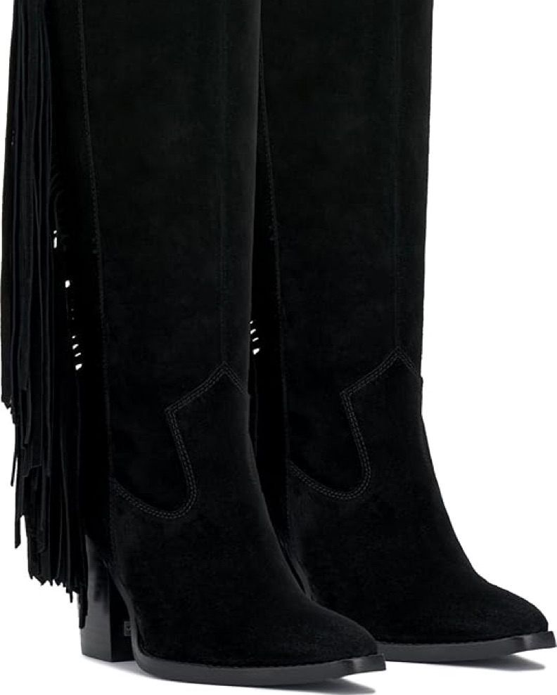 Practically brand new, only worn once. Suede material with fringe on the side. Square toe and pretty comfortable.