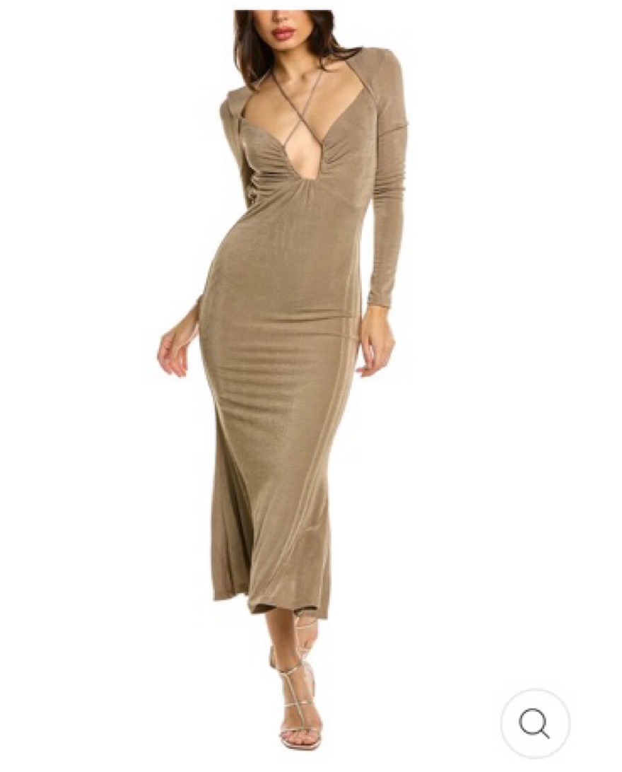 Tan Revolve/Misha Engracia Dress. Backless midi. Great for a cocktail attire event! never worn.