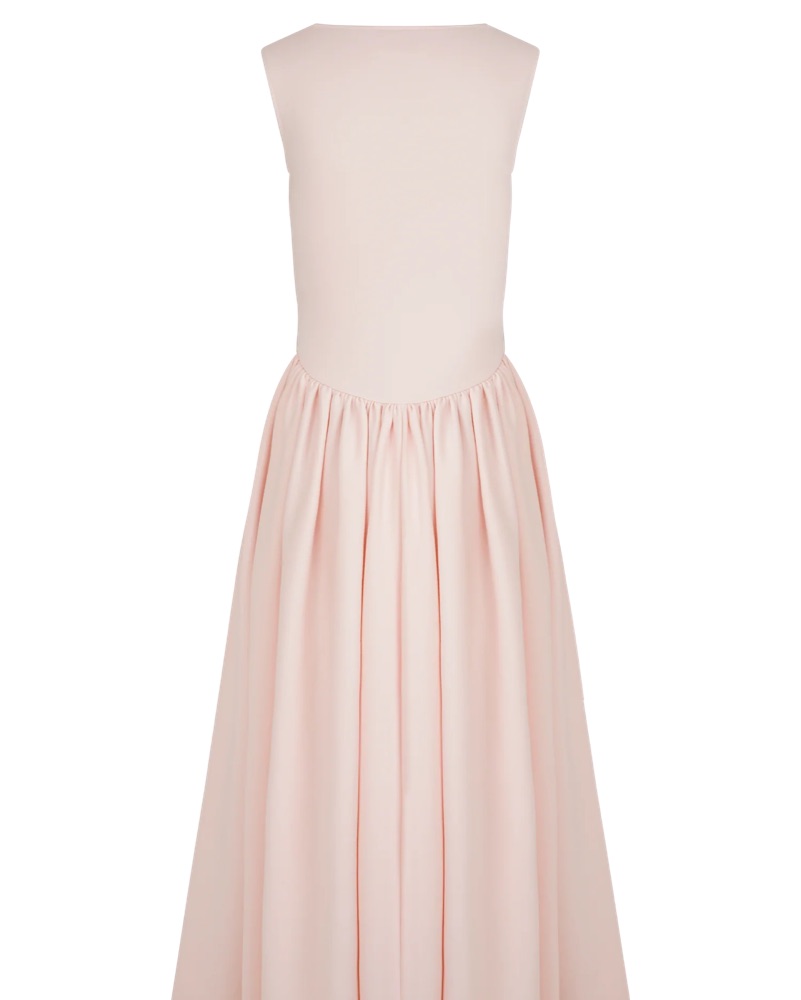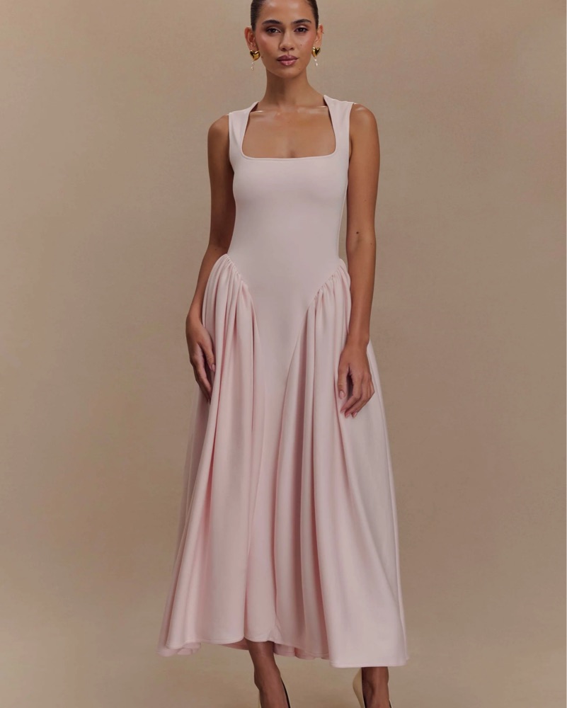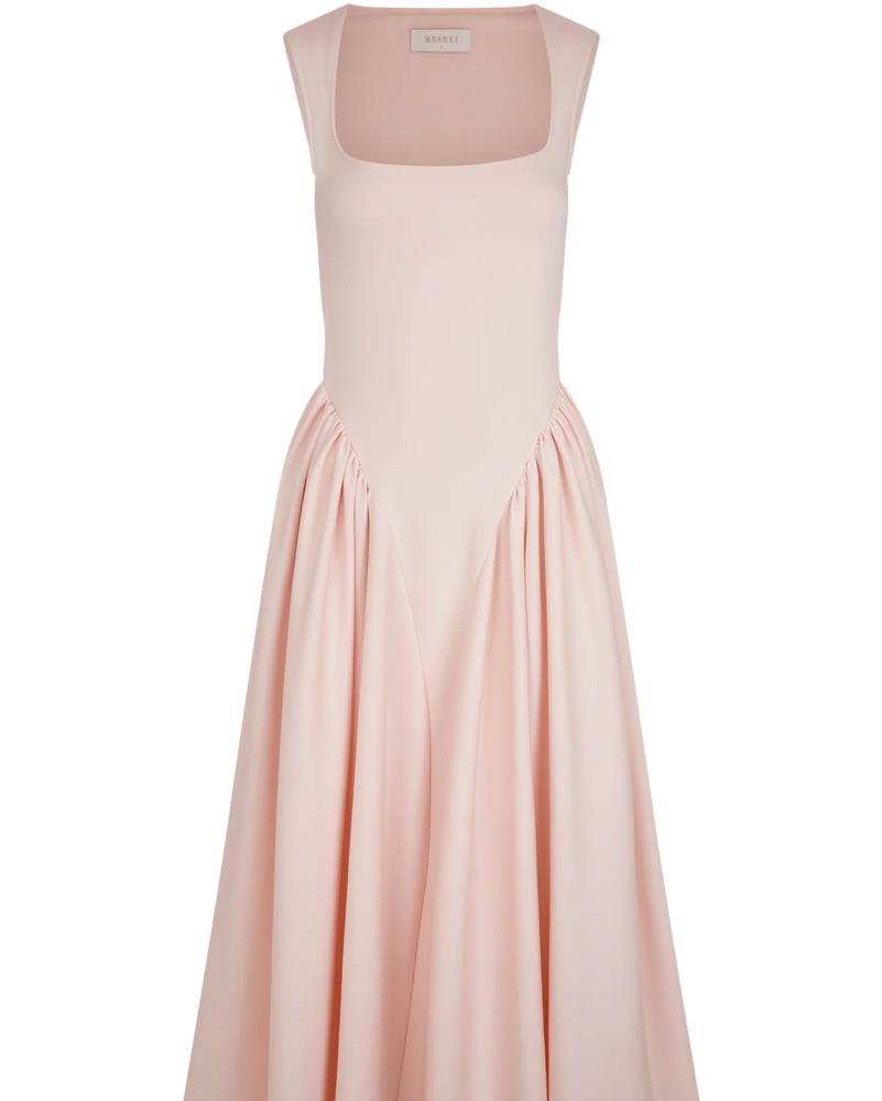 Meshki Sharon scuba dress in pink. stunning midi dress is perfect for any formal occasion. The soft, flowing fabric and elegant silhouette create a sophisticated and feminine look. SO flattering and comfortable!