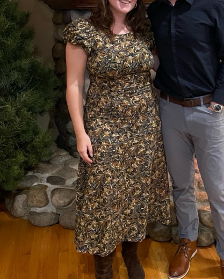 Puffed sleeves, fitted waist, midweight material