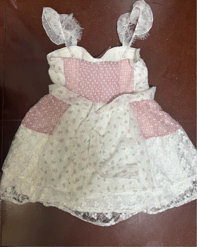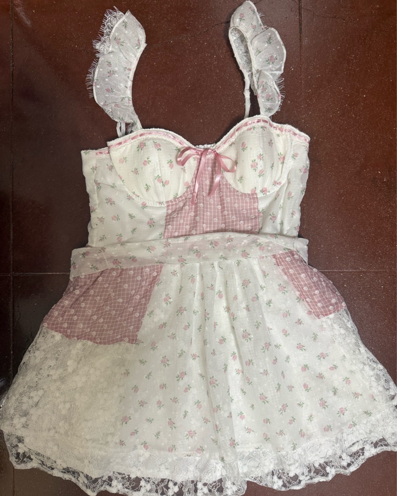A charming sundress with a feminine mix of floral and gingham prints. Perfect for a garden party or summer picnic.