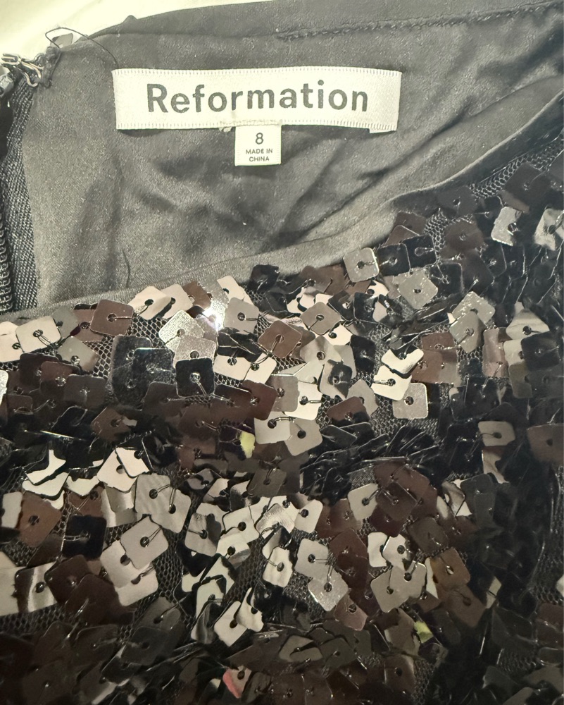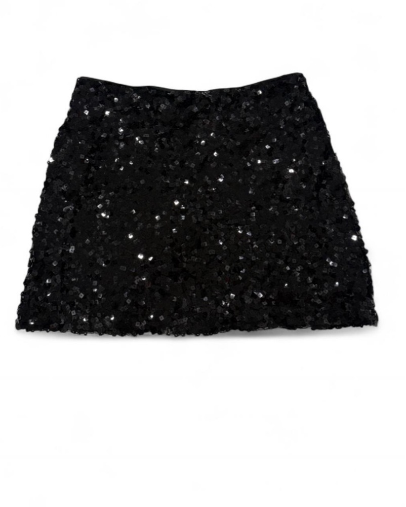 Reformation Black Sequin Mini Skirt—perfect for a night out or event!