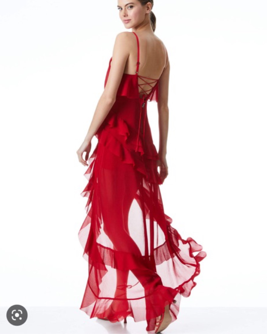 Laverne Tiered Ruffle Dress in red. Perfect for a wedding, formal event, or fhn night out.