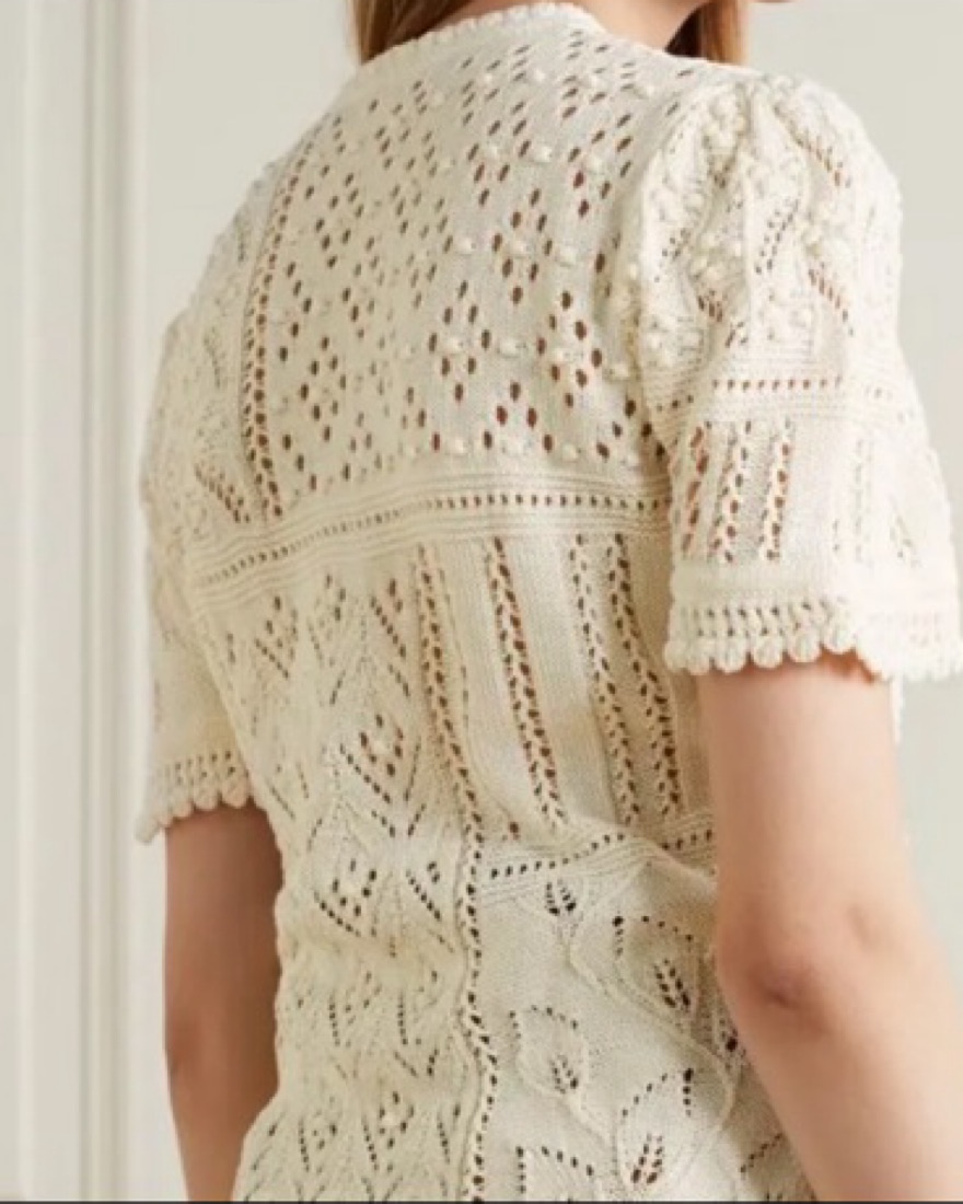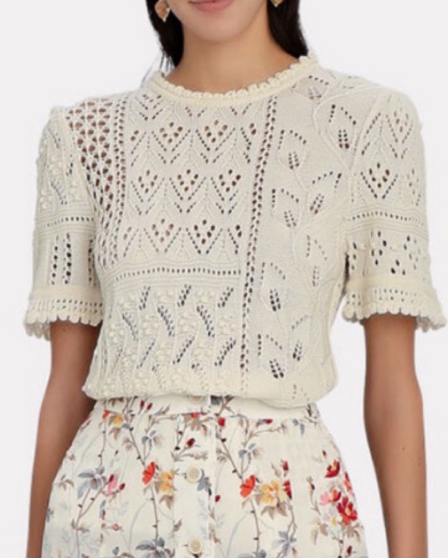 Summer never looked so good with the Anneke pointelle-knit top from Zimmerman's SS21 collection. Made of a cotton blend and brought to life through its unique patchwork design that serves a fresh breath of bohemian style.