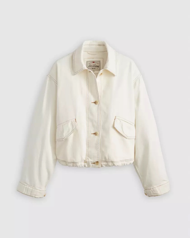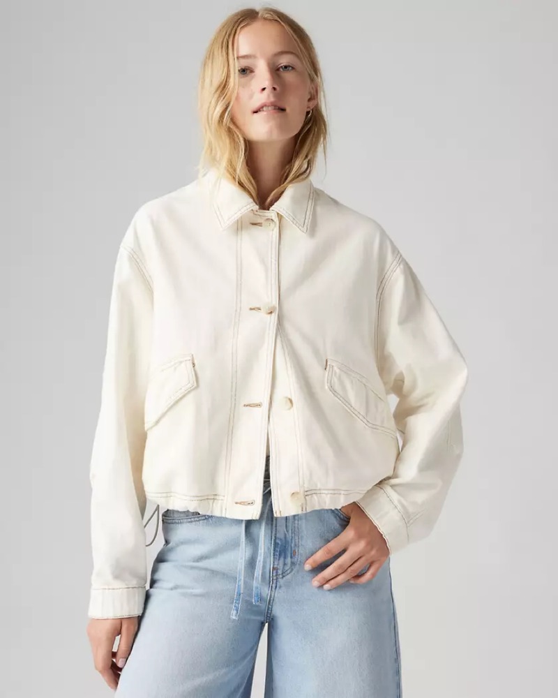 Levis Relaxed Beige Cropped Denim Jacket