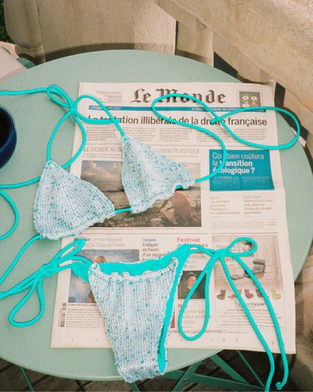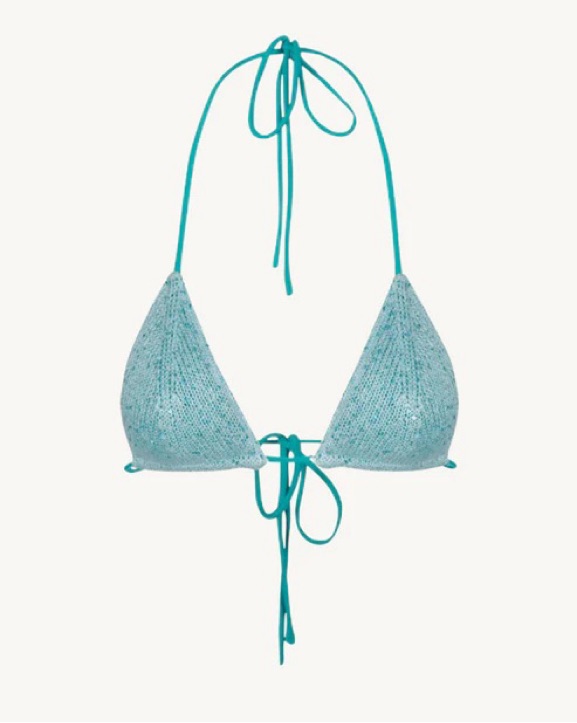 Knitted panels made from a cotton based yarn, spun with micro-sequins. Fully lined and trimmed with lustrous Italian lycra for a silky smooth wear.