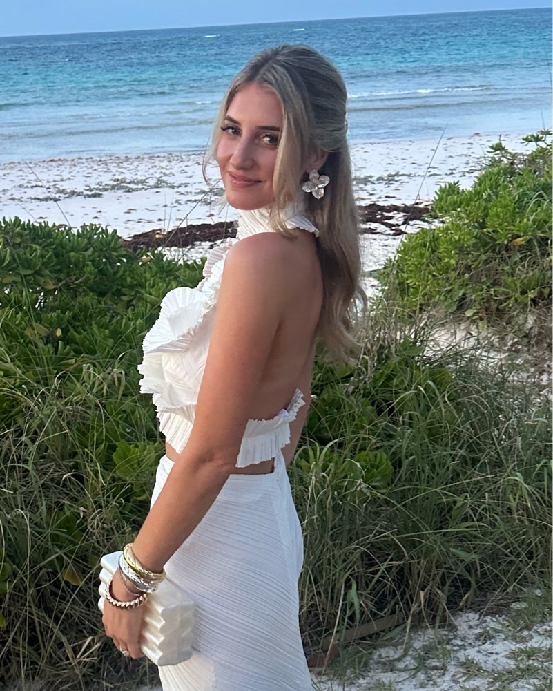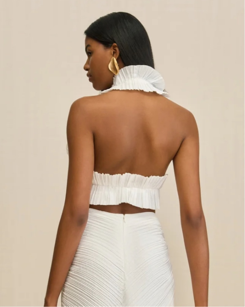 Sculptural plisse halter top with an open back and elastic band. Wear it with the Sonoma Skirt (rented separately).