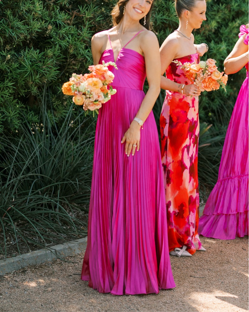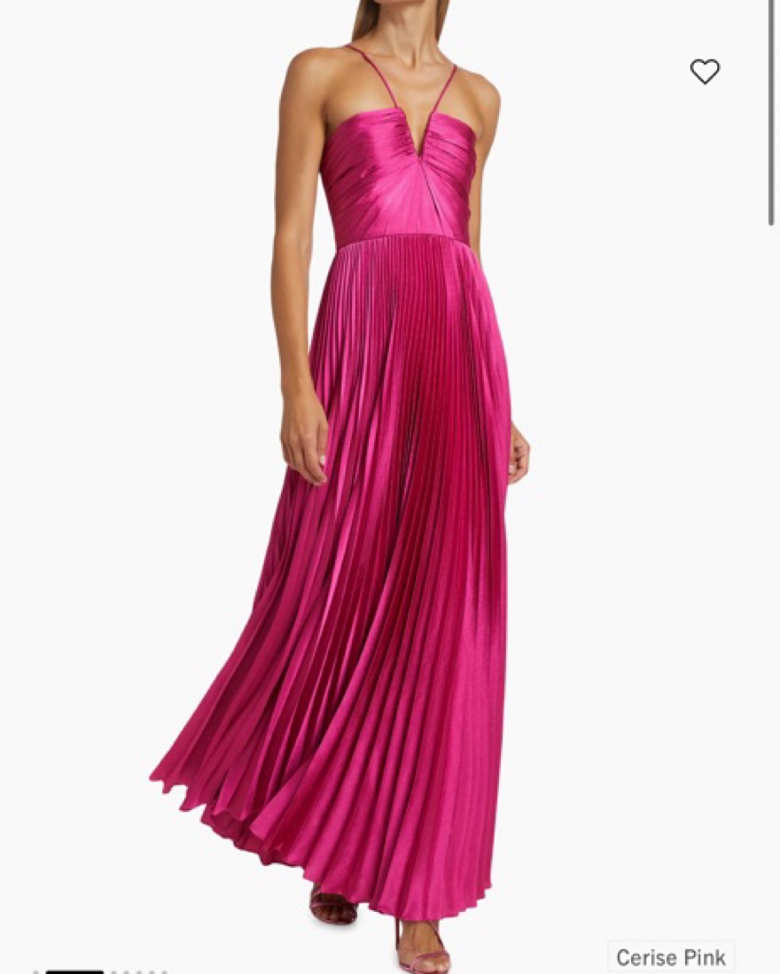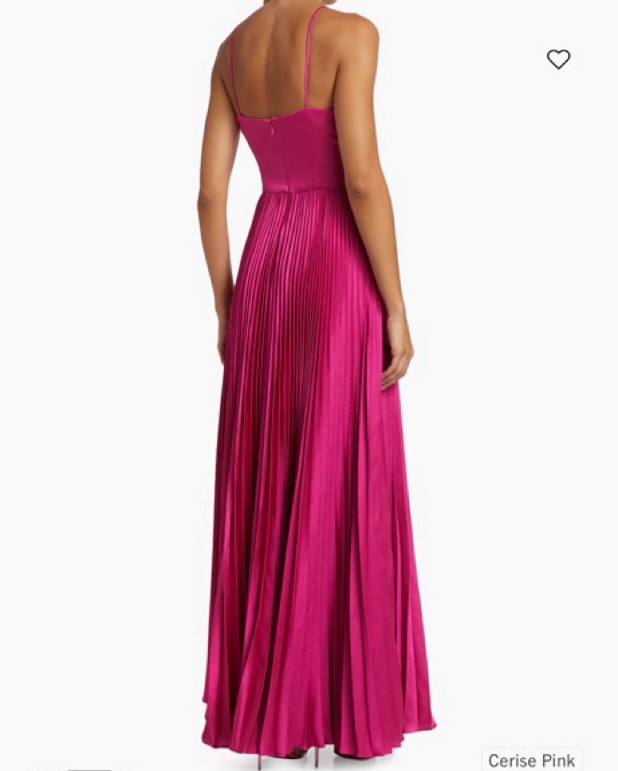 Pleated gown. Size 0. Altered to 00 and to fit me. I am 5’6 and 120 lbs. I wear a 32b bra size. Please dry clean before you return.