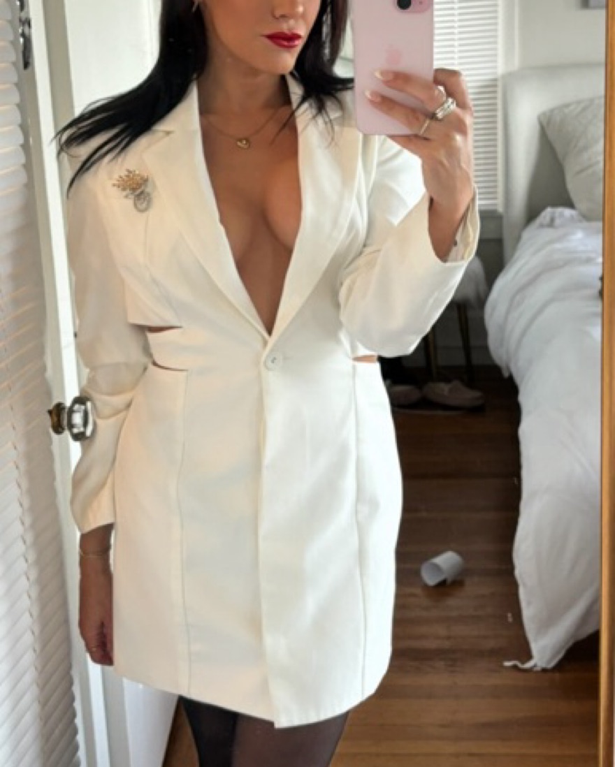 This versatile white blazer dress is perfect for a night out or a professional event. The tailored design and deep neckline create a chic, sophisticated look.