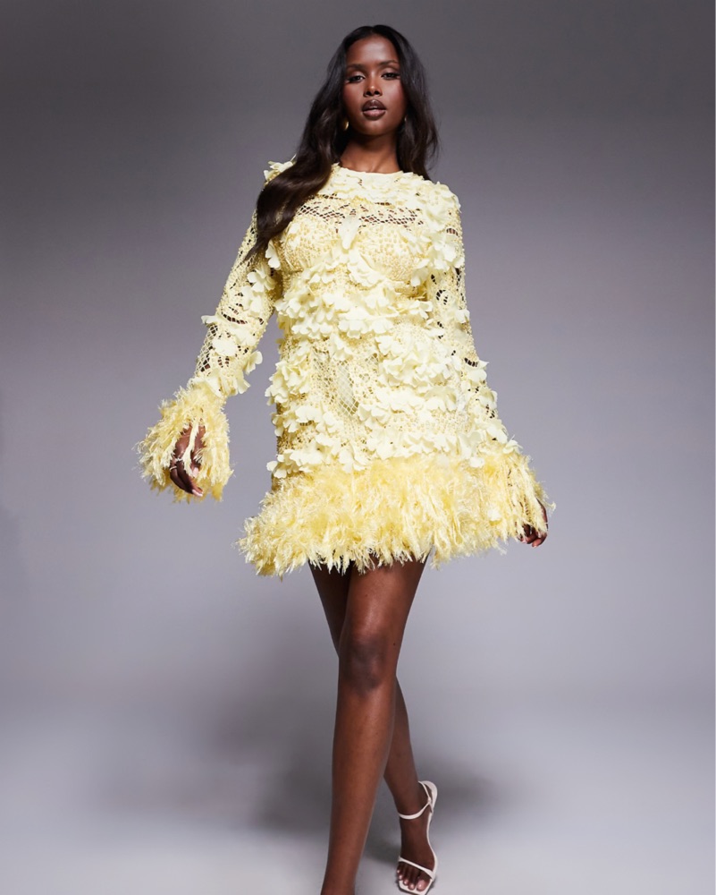ASOS LUXE 3D Floral Feather Mini Dress