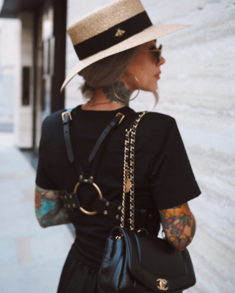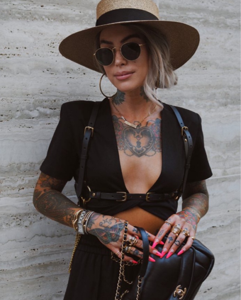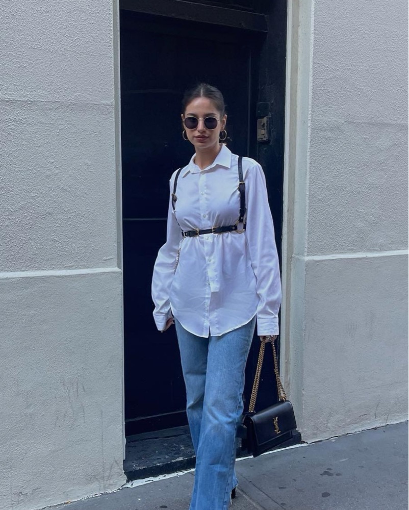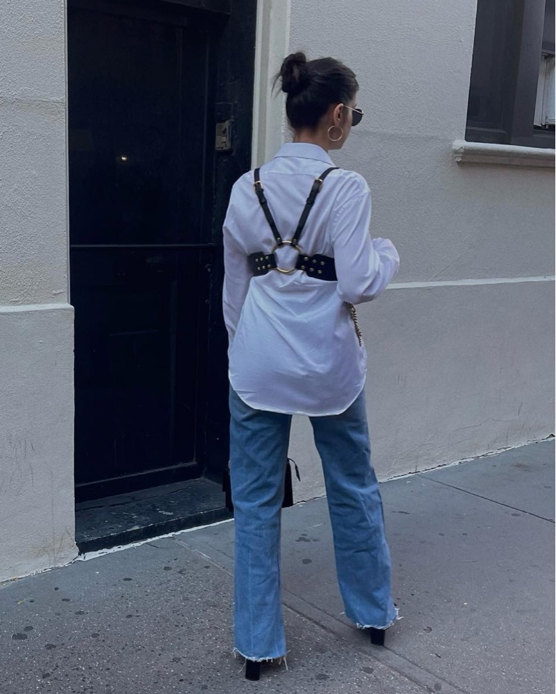 Iconic leather harness with gold hardware & connecting chain from Sammi Jefcoate’s brand, Ardeo Studios. They don’t sell these anymore! Adjustable buckles but fits S-M only. I wear it on the loosest buckle.