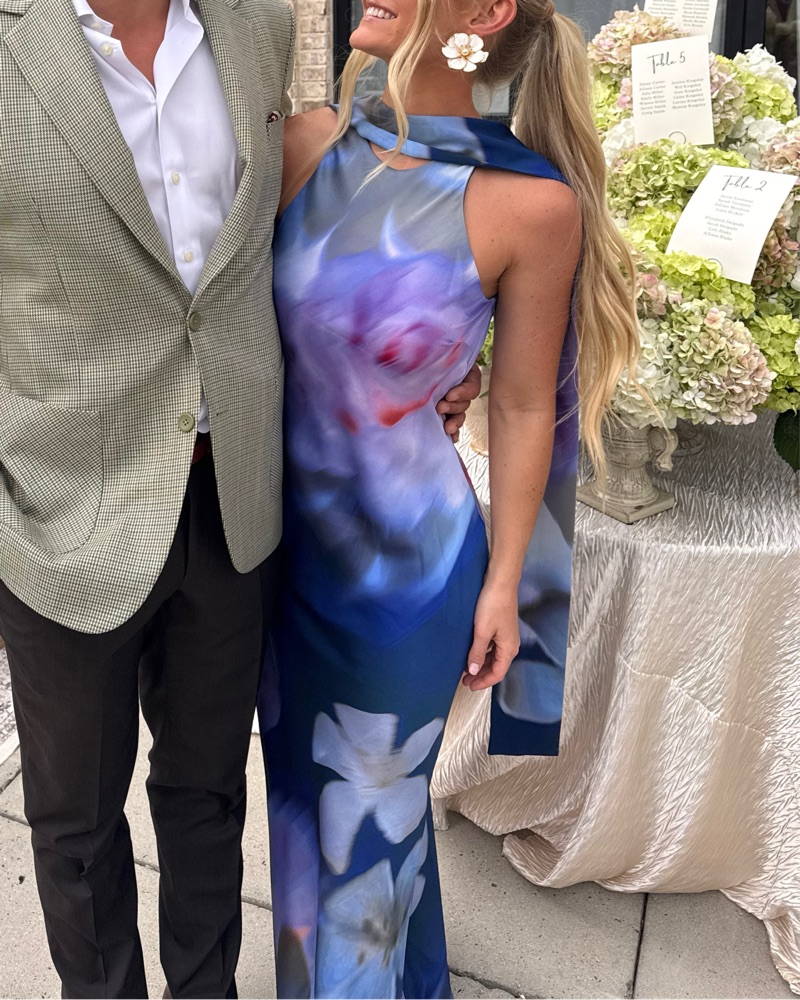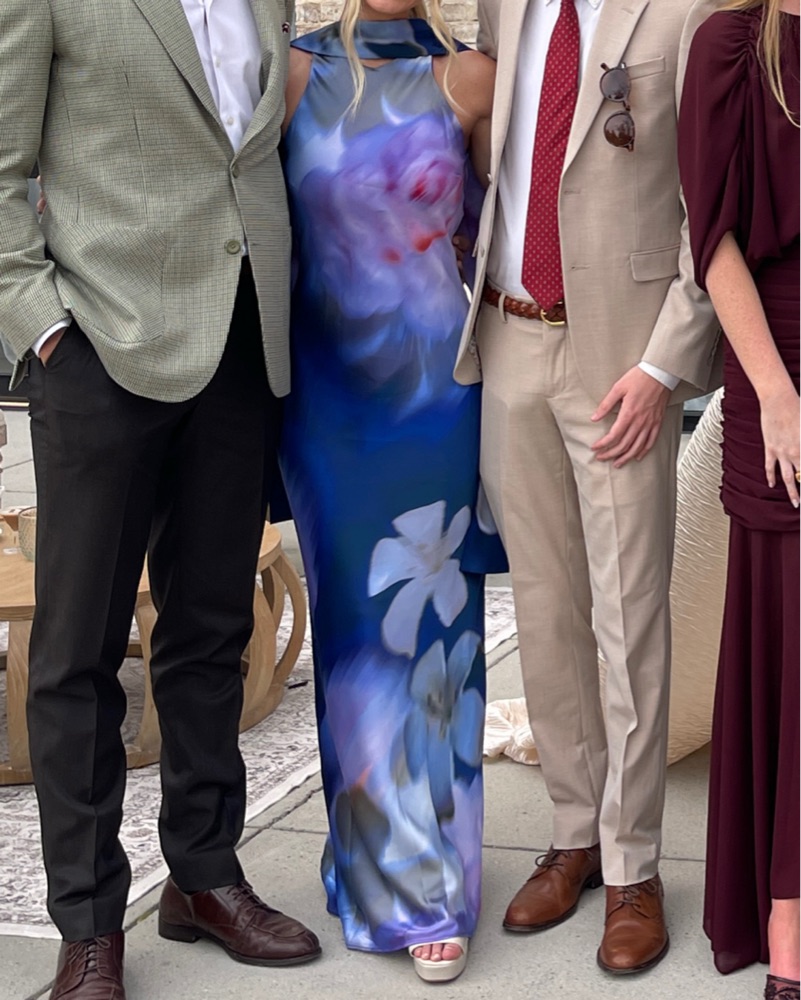 Blue/purple floor length scarf dress