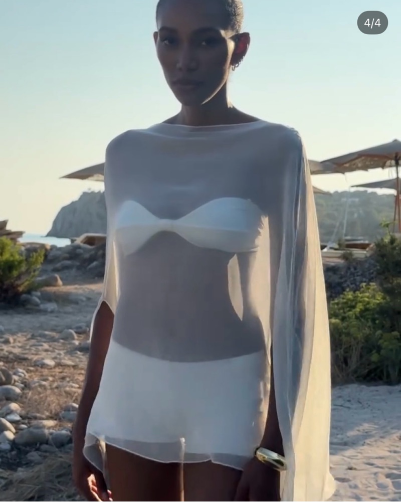 Set Includes Poncho, Twist Tie Top and Shorts. All sizes medium. Fits sizes small-large