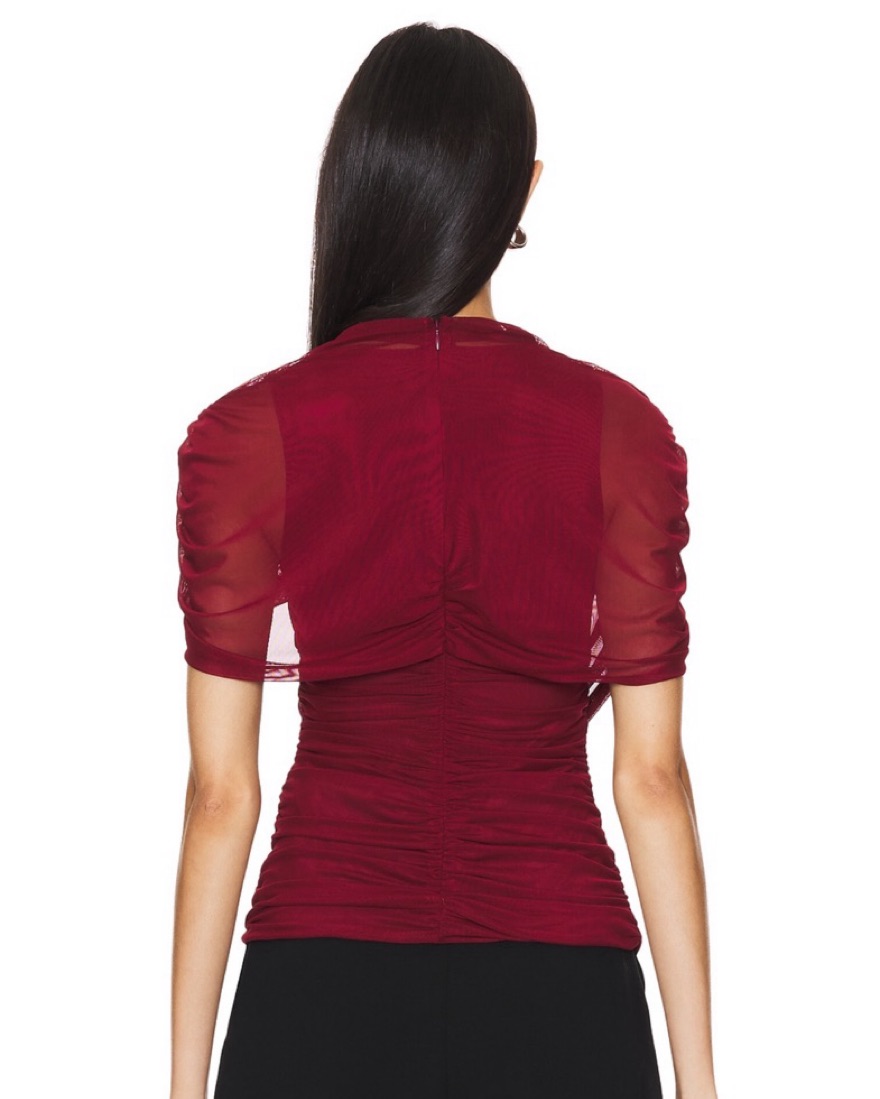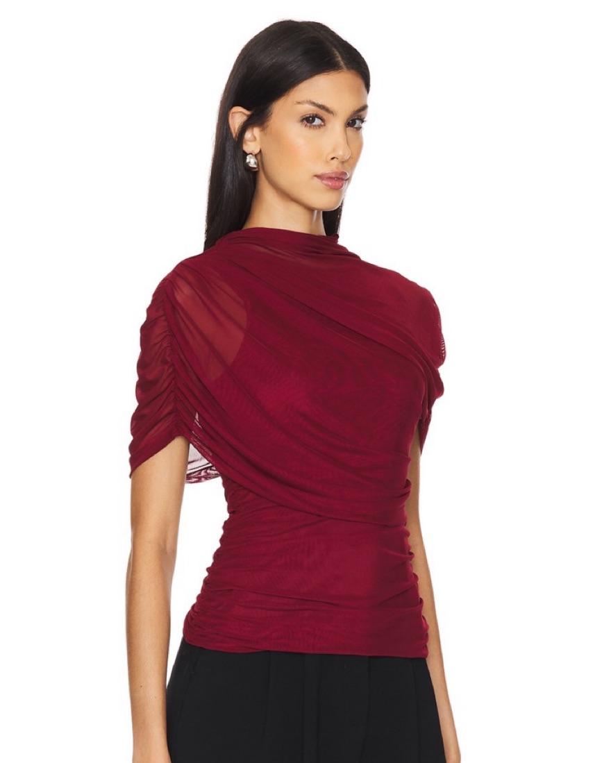 Burgundy draped sleeve top with side zipper. Top fabric is delicate - must handle with care, damage will incur fees. Rental price is higher than average due to dry clean only. If you will handle dry cleaning prior to returning pls DM me/note in your offer.