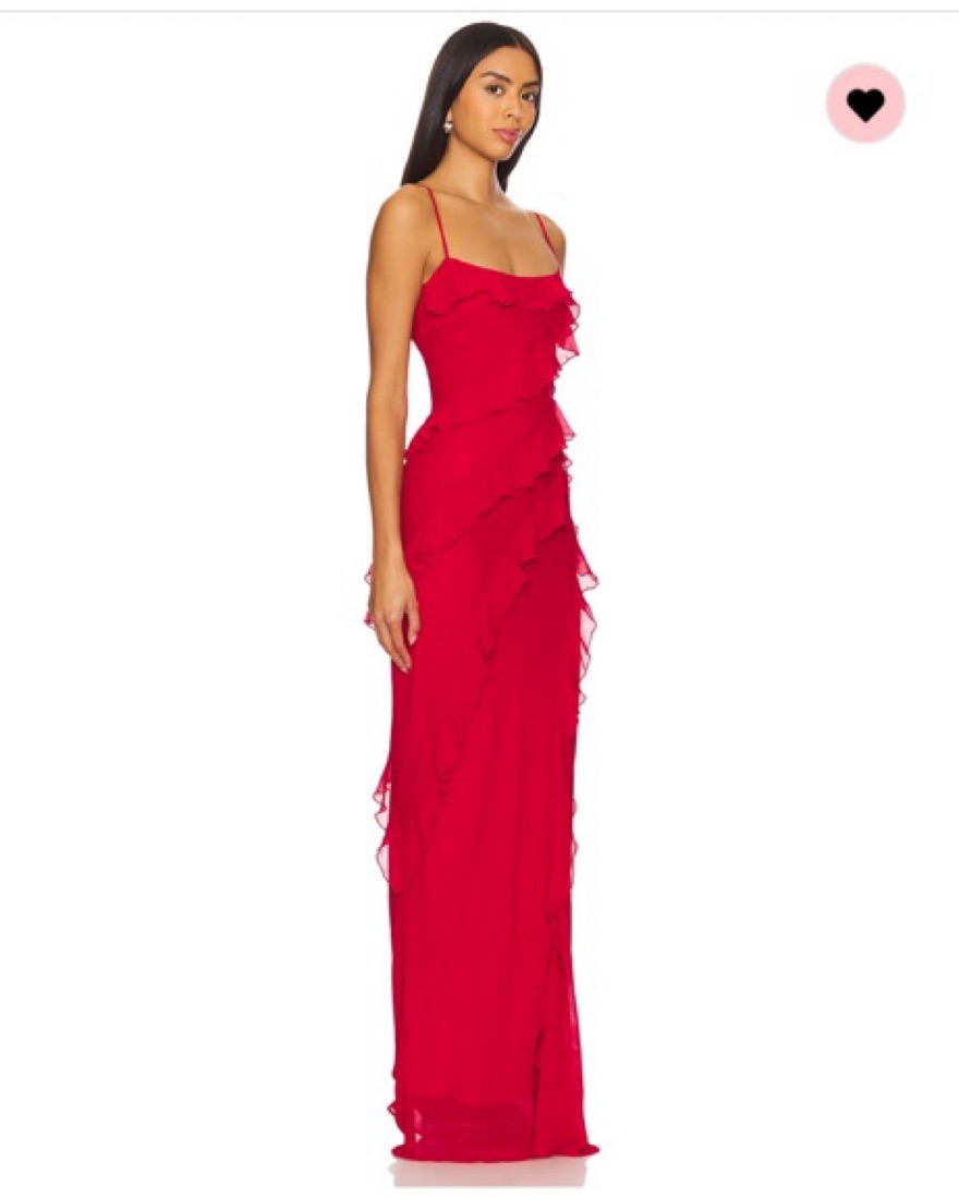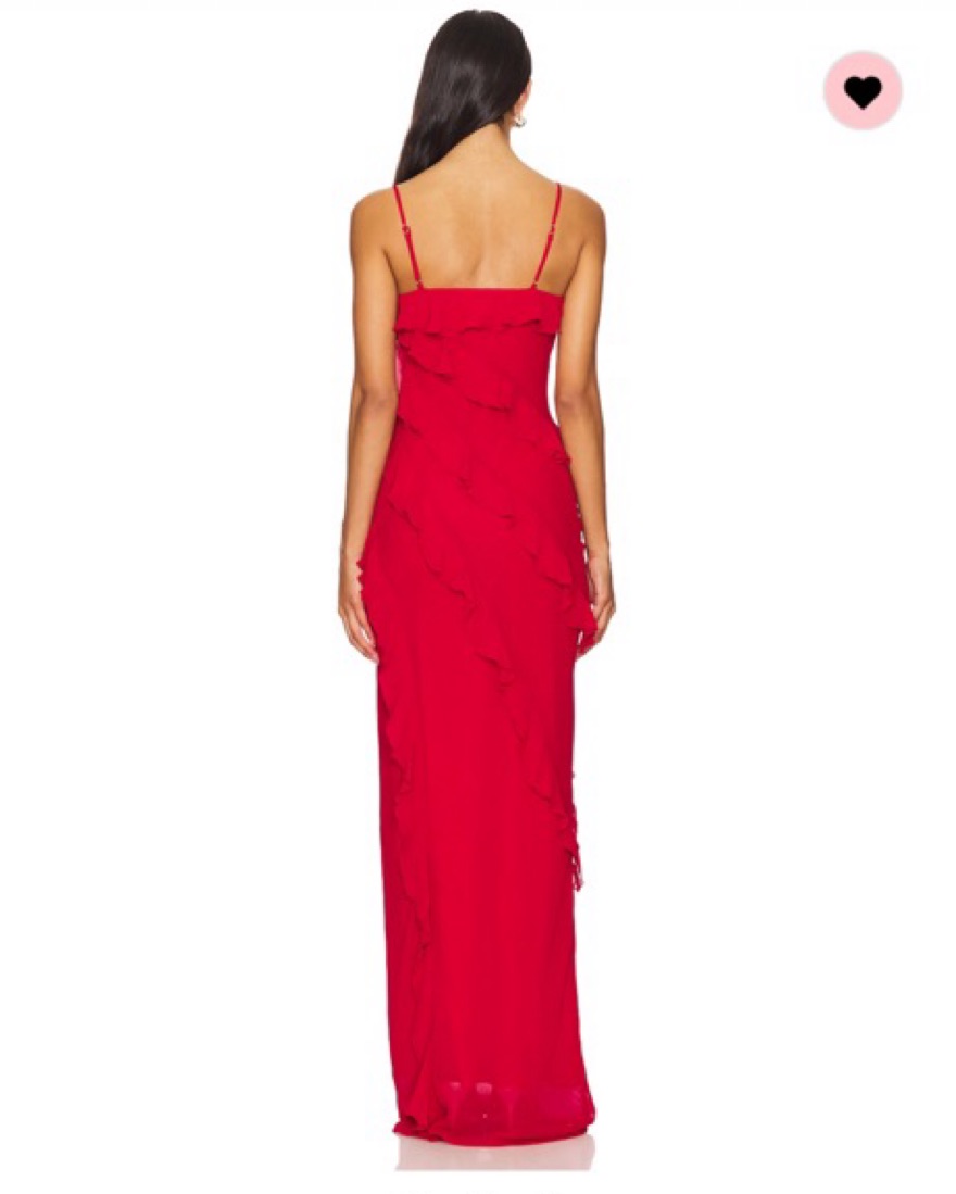 DELORA RED GOWN FROM LOVERS & FRIENDS SIZE XXS BUT CAN FIT A SIZE XS FULLY LINED HIDDEN SIDE ZIP CLOSURE SIZE XXS: Bust: 31 1/2 Waist: 24 Hip: 34