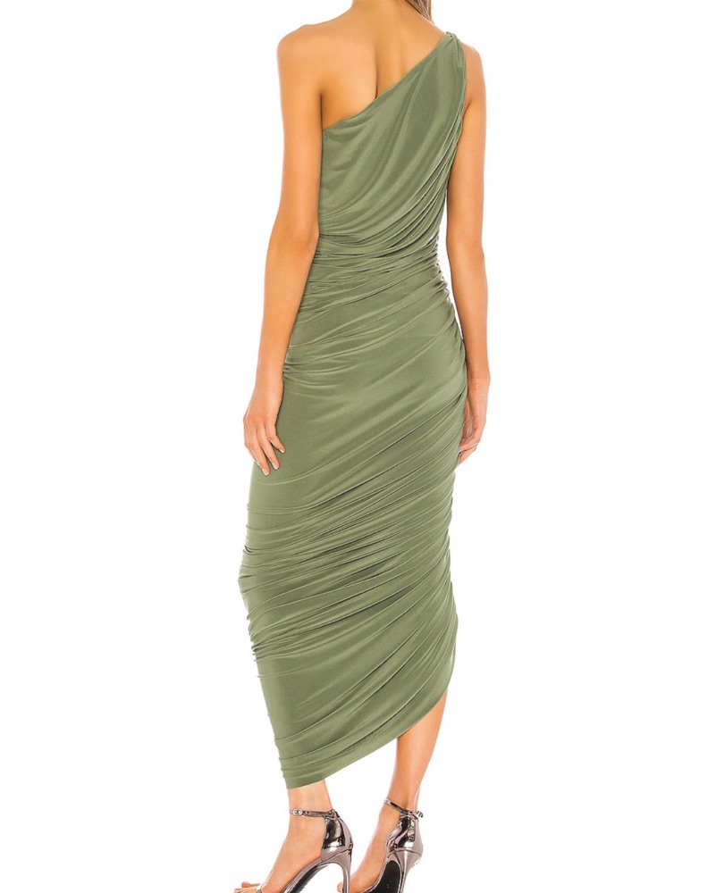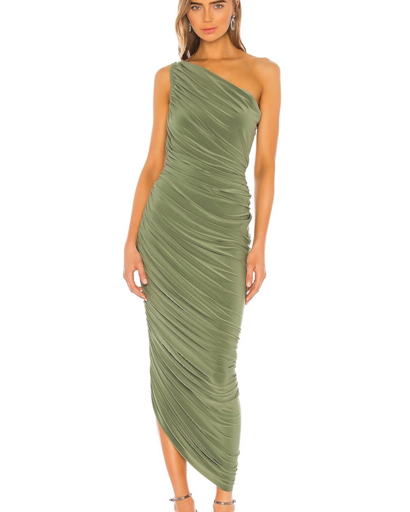 Celadon (Green). Bodysuit lining. Sisterhood of the traveling dress - this looks good on everyone! Size small but will fit a XS, small or medium. You can adjust the ruching throughout.