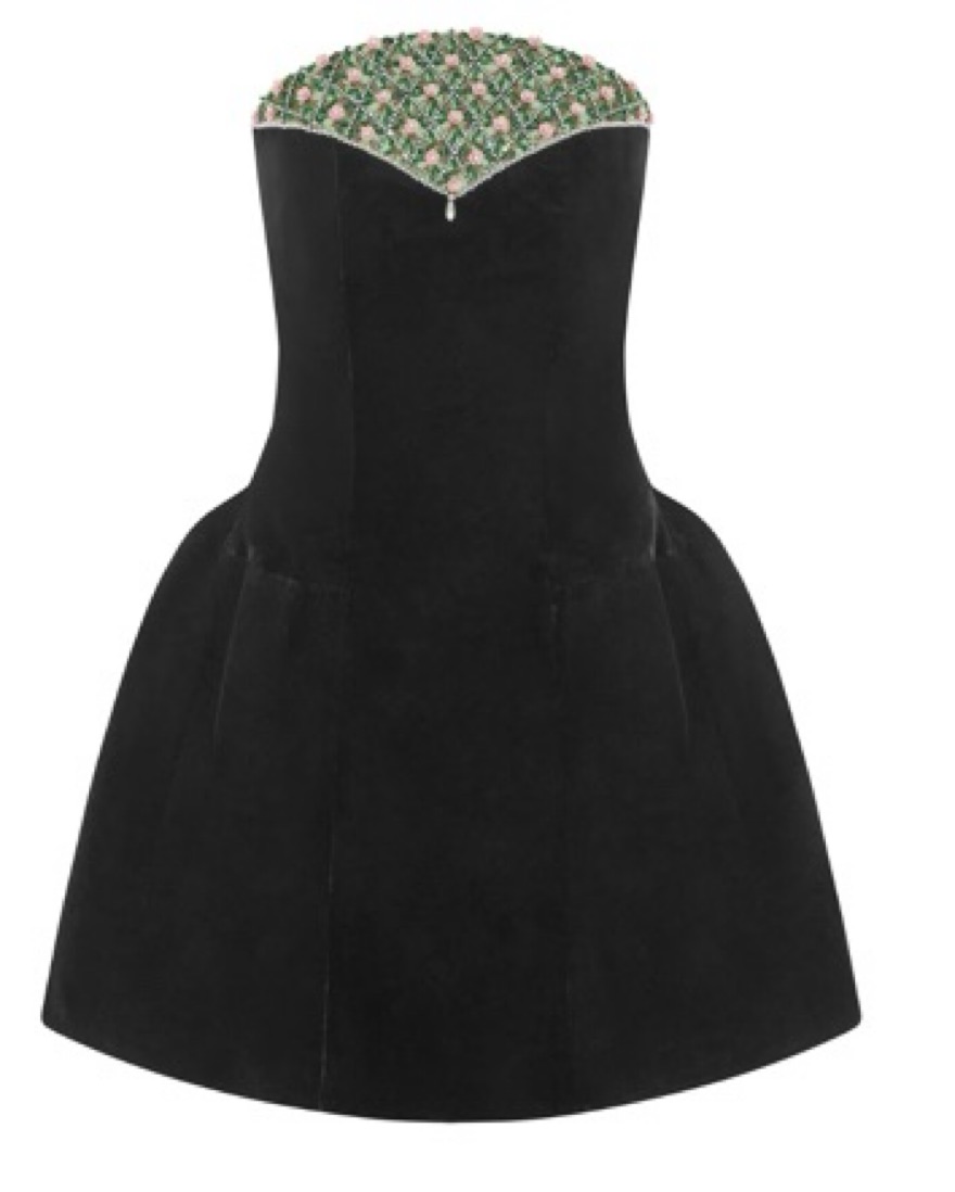 velvet rose mini dress from clio peppiat! Beading on the corset is absolutely stunning and in perfect condition. Top closer to an XS and might be a tough fit for anyone with a bigger chest.
