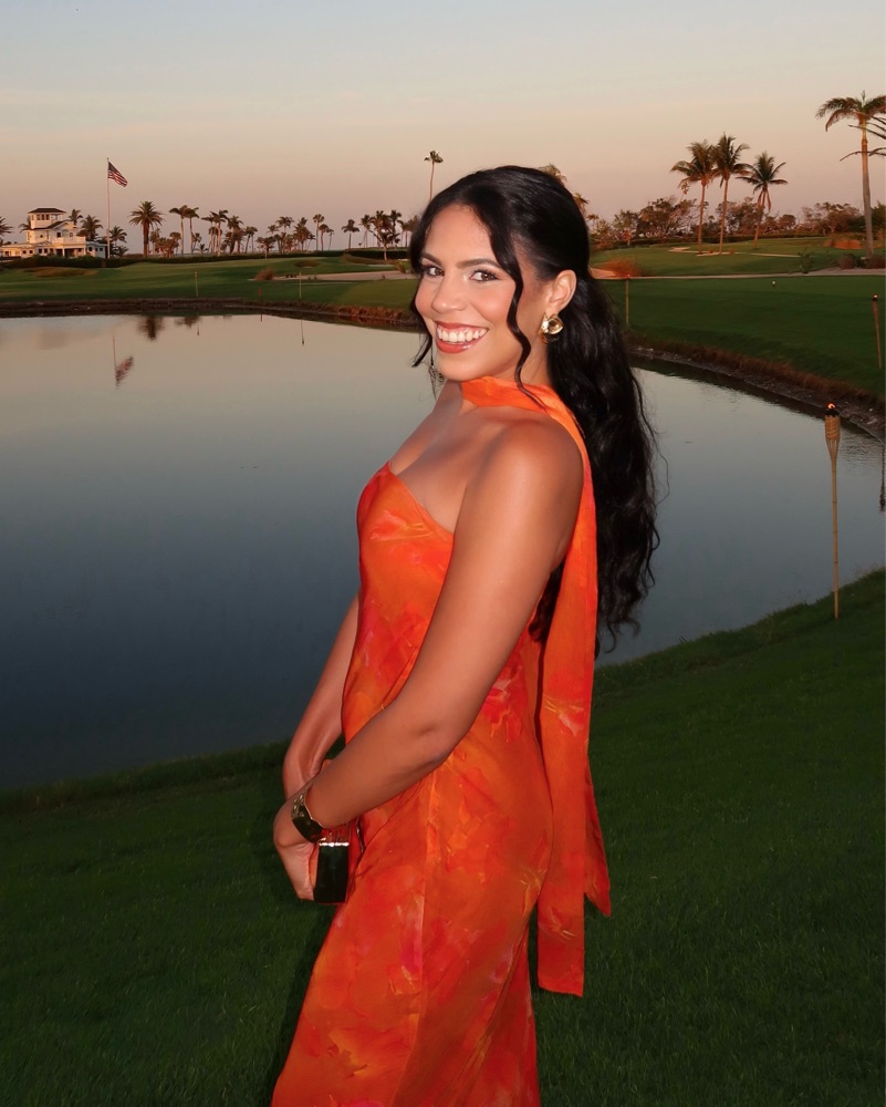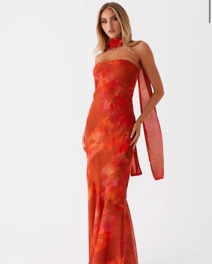 This stunning orange maxi dress is perfect for a wedding or birthday. Used once!
