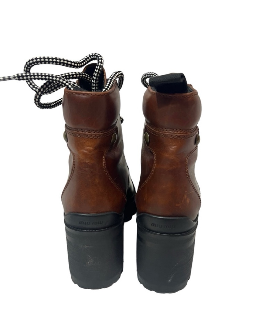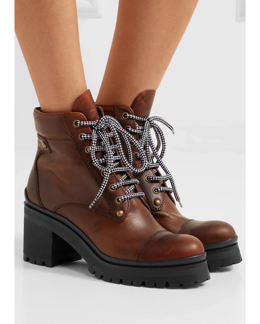 Miu Miu Platform Lace Up Boots by Miu Miu - Pickle