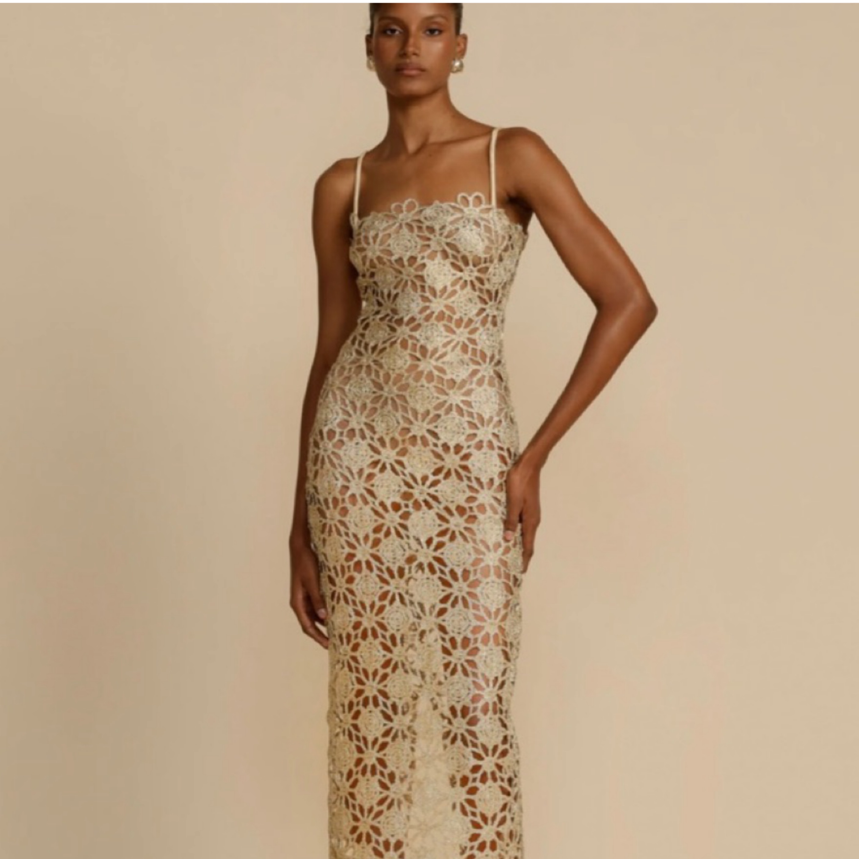 Gold Arcina Ori Kendra Dress. Can be worn on its own or with a tube top slip dress underneath.