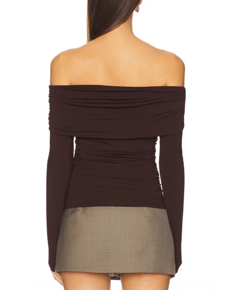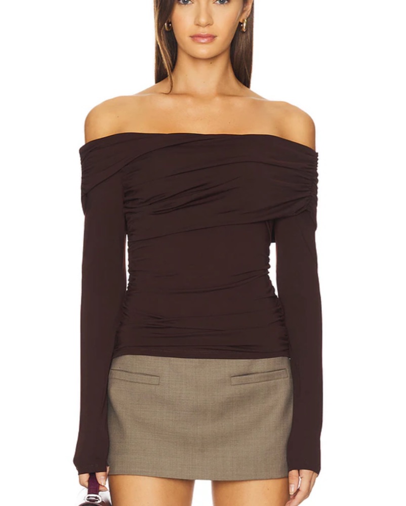 ASTR Brown Off Shoulder Datia Top - S by Astr The Label - Pickle