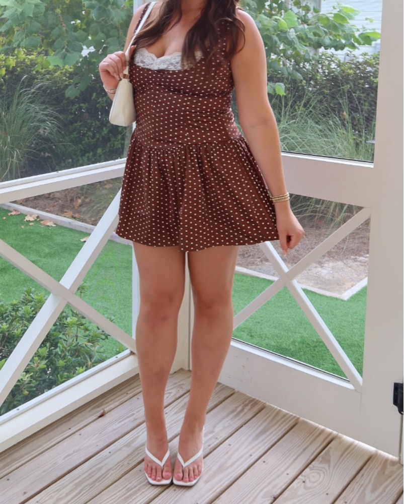 Silky brown polka dot pattern with gorgeous lace detail