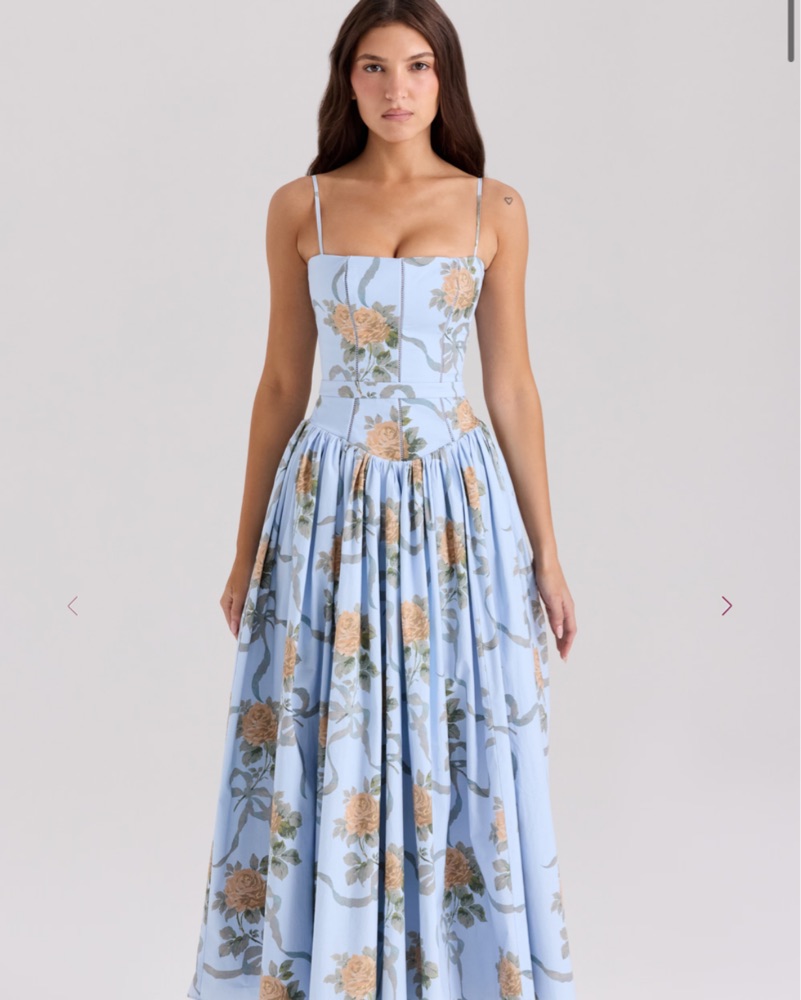 Blue Vintage Rose Print Cotton Midi Sundress Shipping price not included ⚠️