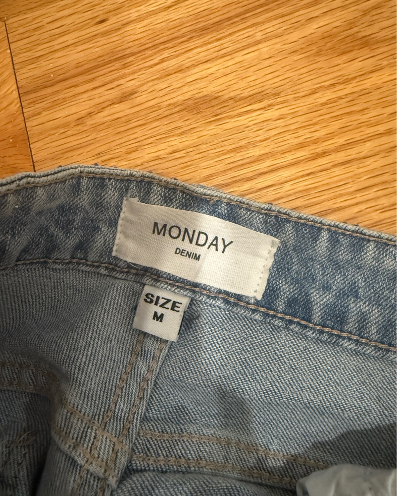 worn once for a bach night! did get them hemmed slightly because they were SO long. Size M. Fits 26/27/28 I would say!