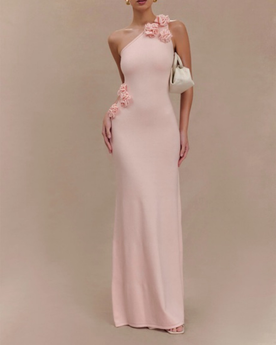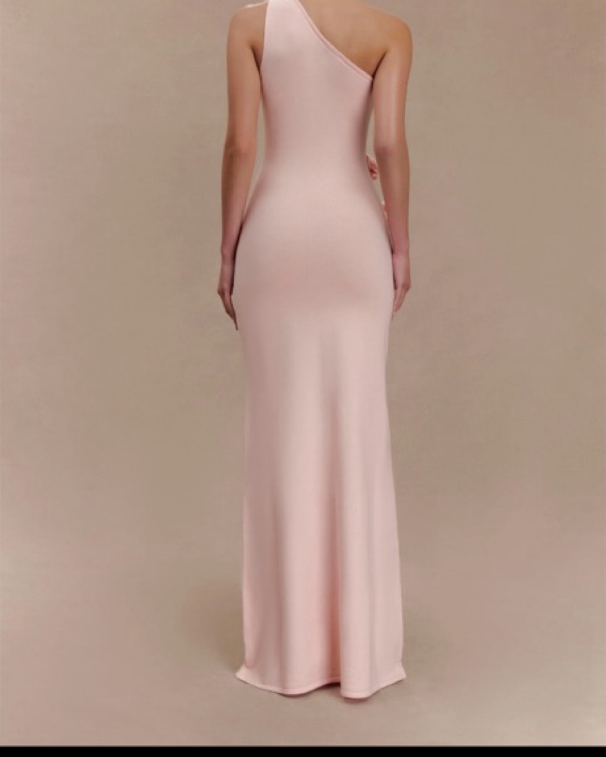 This stunning one-shoulder gown is perfect for a formal occasion like a wedding or gala.