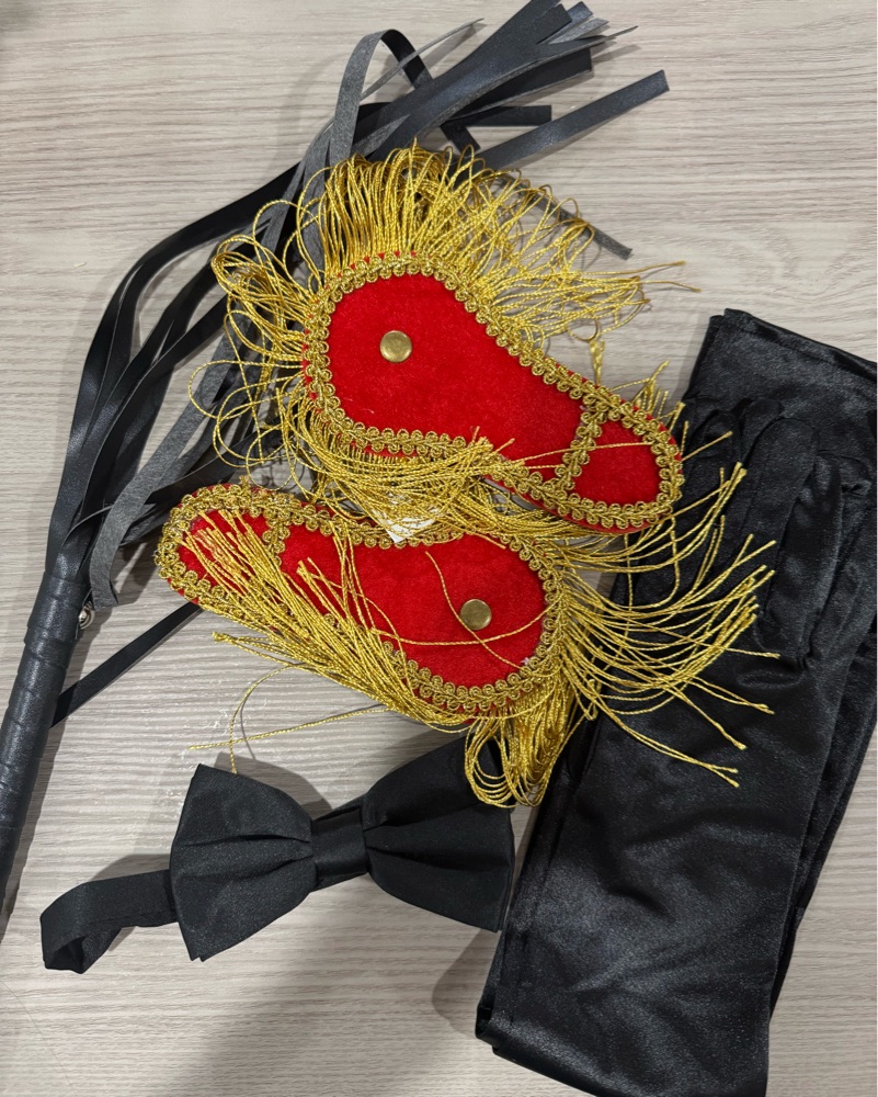 Rental only available starting NOV 1 Bra fits 34/36 B/C Included: Bra, Gloves, Bow, Whip, Waist chain, Epaulettes NOT Included: black shorts + boots