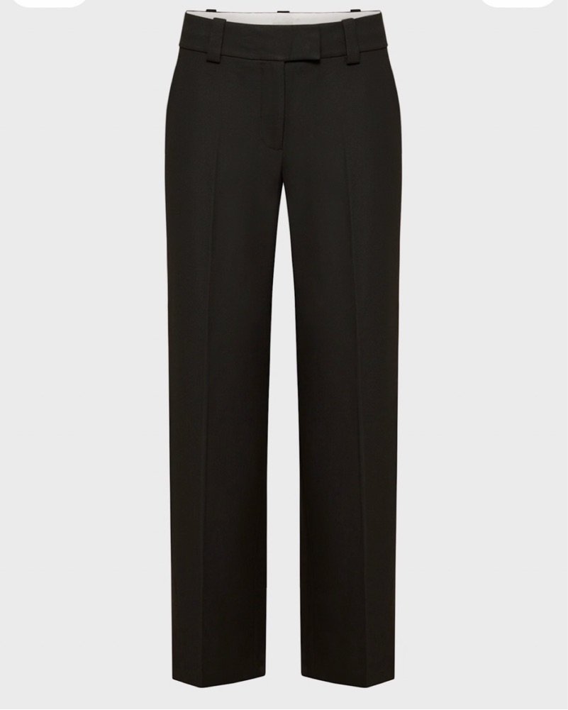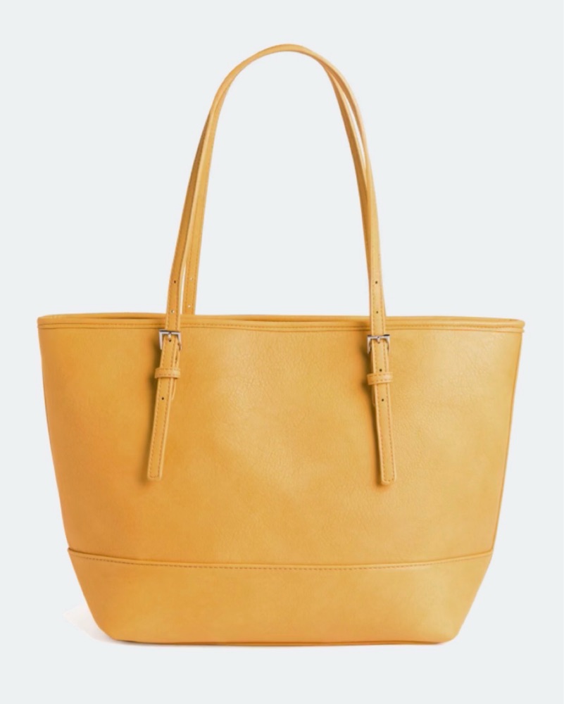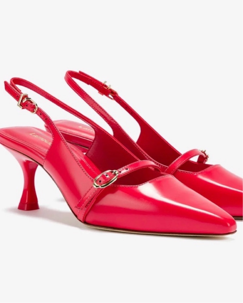 Aritzia Wilfred Seville Low-rise Trousers (size 0); Aritzia Bare Cashmere Crewneck Cardigan (XS); Banana Republic Red Sleeveless Blouse (XS); Larroudé Scarlet Red Ines Slingbacks (size 8); yellow leather tote bag