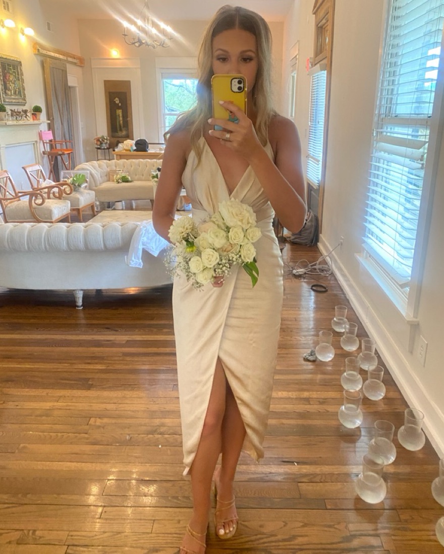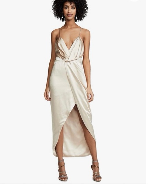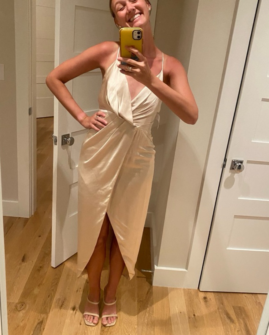 Chapagne satin bridesmaid dress — had invisible button put on bust so it doesn’t flap open