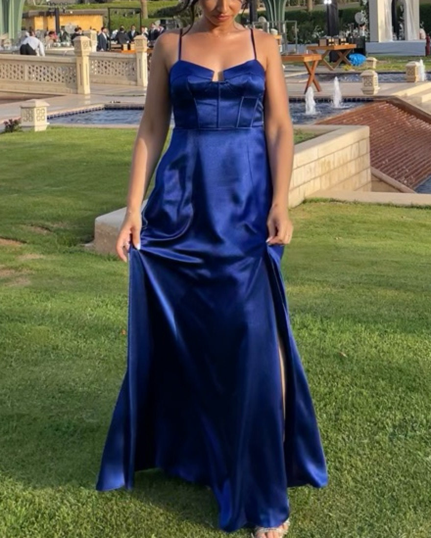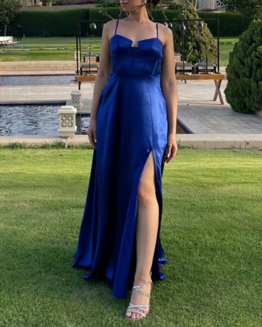 Sapphire Blue Satin Corset Maxi Dress