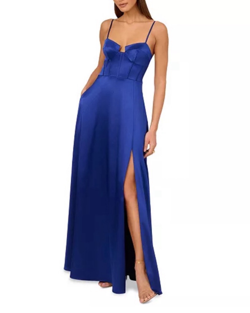 Sapphire Blue Satin Corset Maxi Dress by Adrianna Papell - Pickle