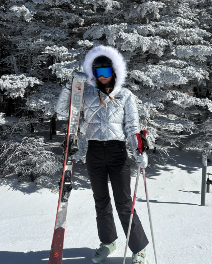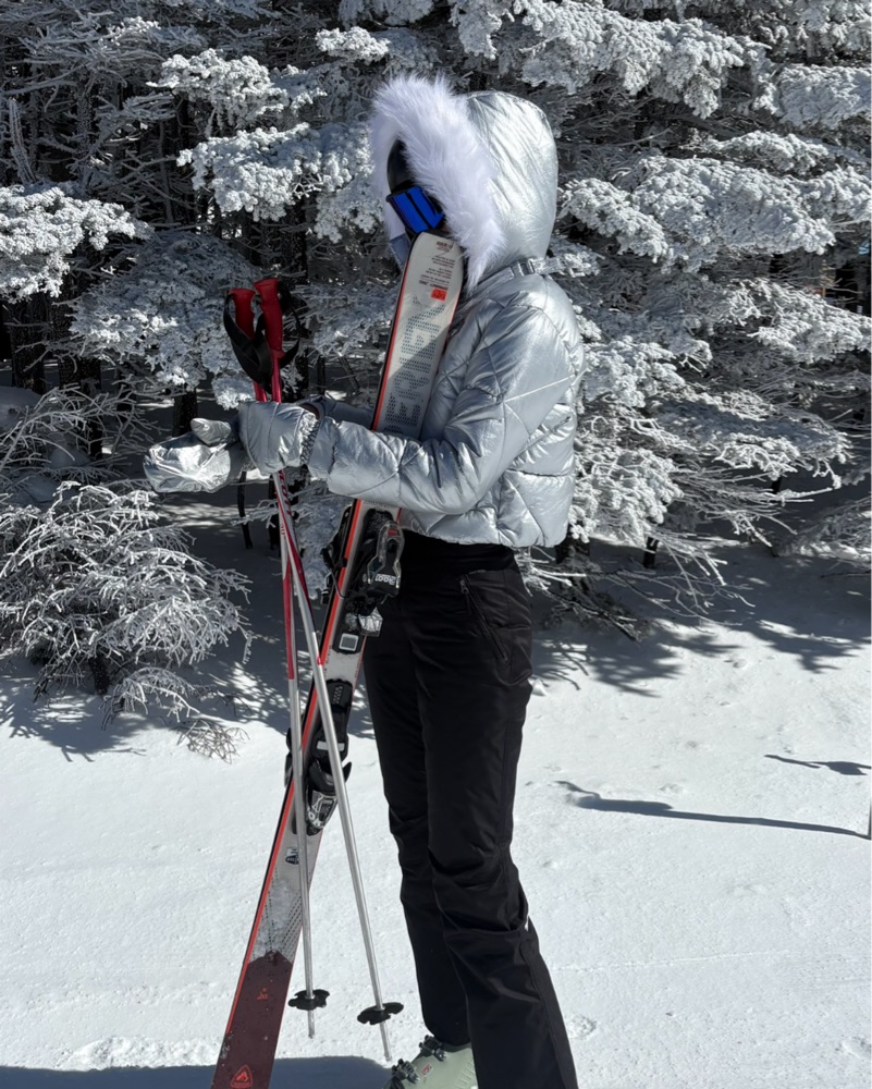 Metallic Silver Ski Jacket And Bag