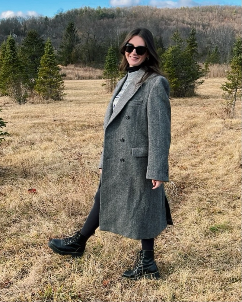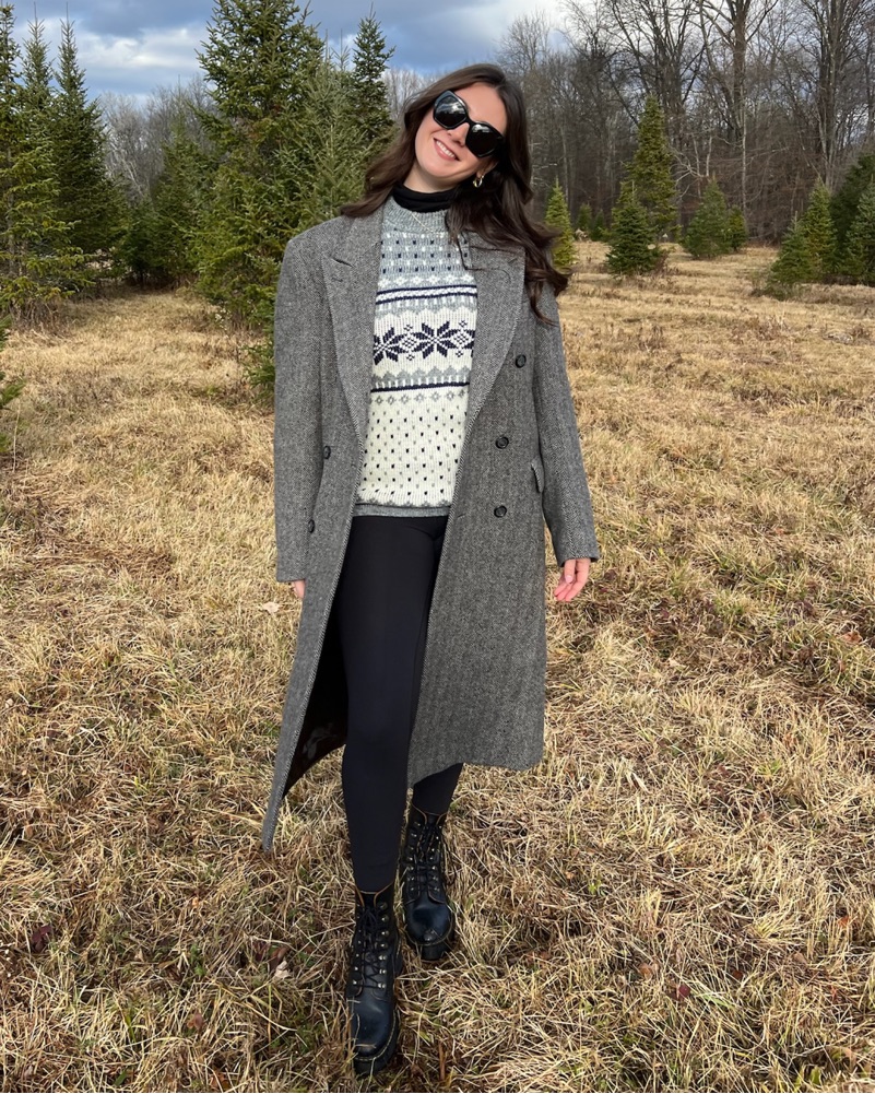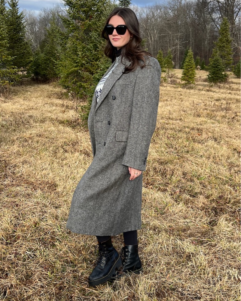 Vintage Gray Black Herringbone Coat