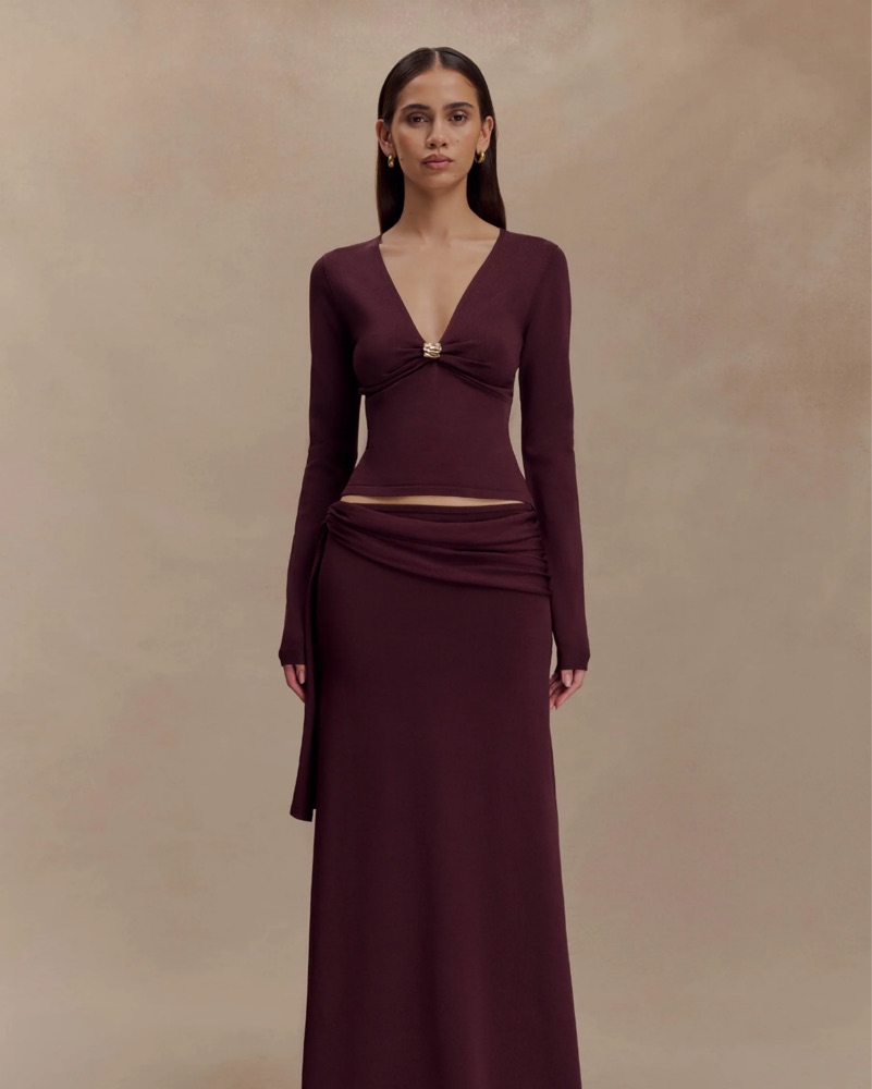 Miraby Front Ruched Knit Long Sleeve Top by Meshki - Pickle