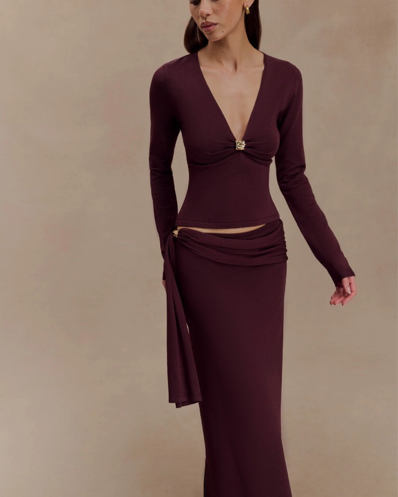 Miraby Front Ruched Knit Long Sleeve Top