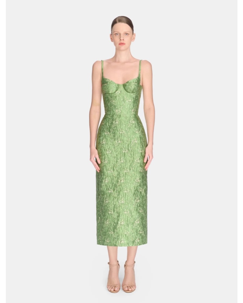 CultMia Montsand Brocade Bamboo Midi Dress. This striking midi dress is perfect for a special occasion. The metallic green hue and fitted silhouette create an elegant, glamorous look. Fits more like a small !