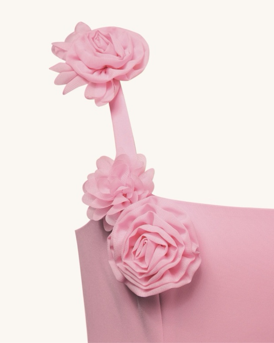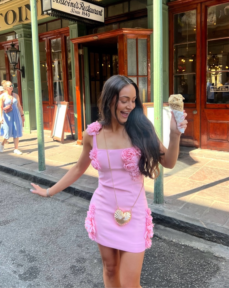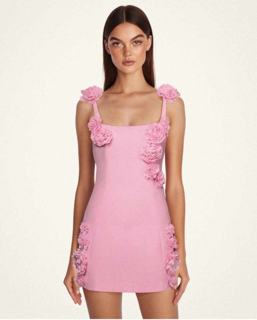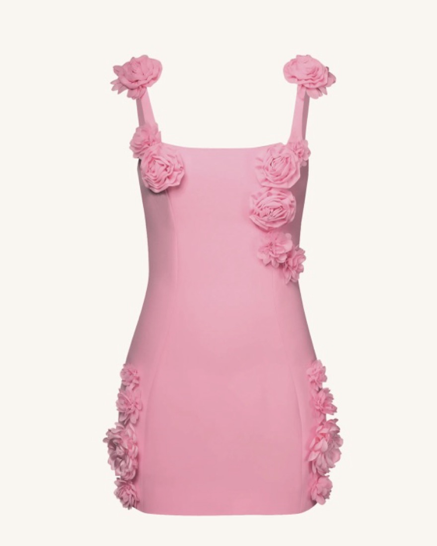Elaina Pink Rosette Applique Mini Dress by Jwpei - Pickle