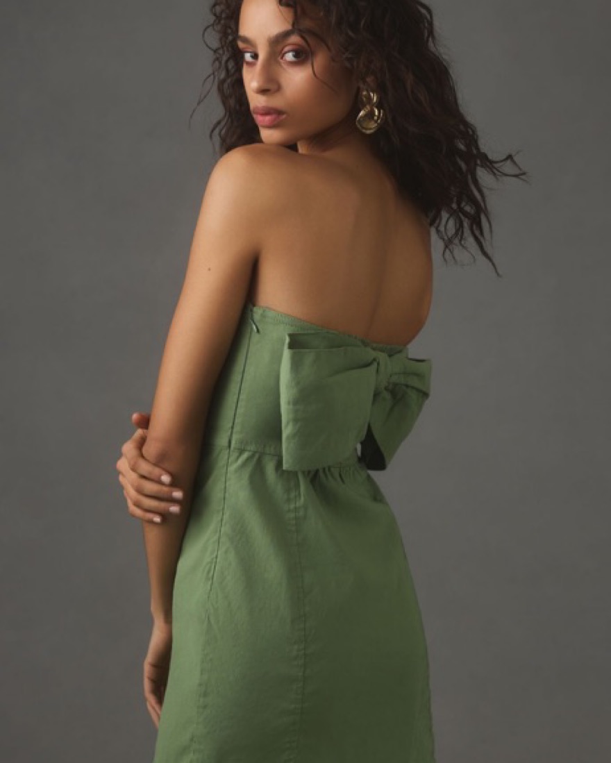 Strapless Green Bow Dress by Anthropologie - Pickle