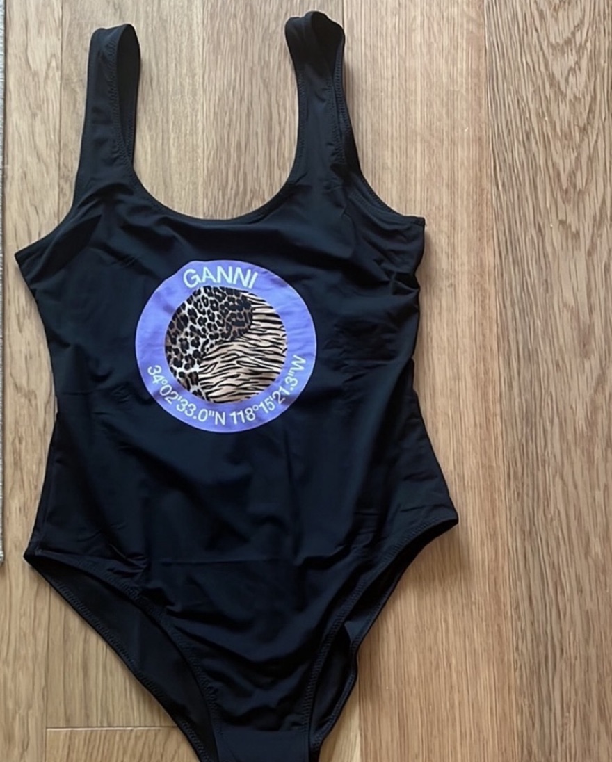 Black GANNI Logo One Piece Swimsuit