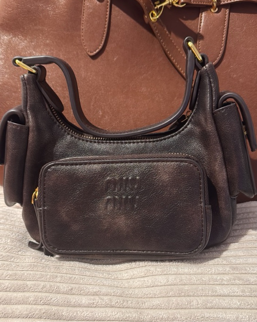 Miu Miu Nappa Pocket Leather Bag in Coffee! small handbag with adjustable crossbody strap🥰✨