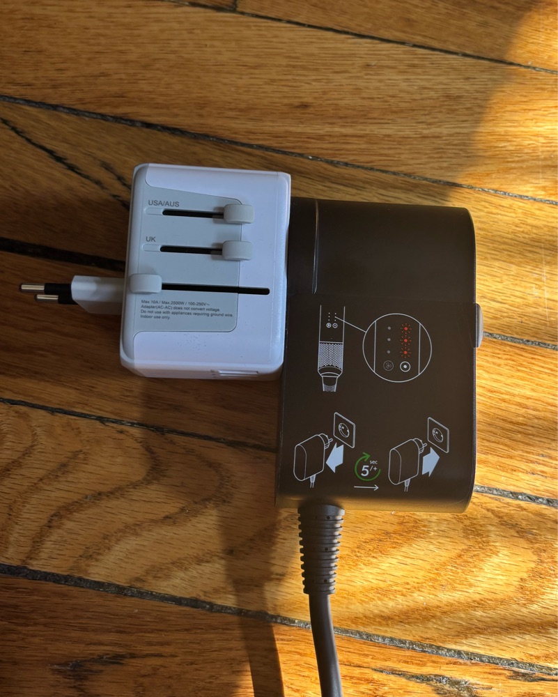 Newest Edition Dyson Airwrap! Gorg light pink and rose gold color! Works in UK, EU, and all countries in photo. Has UK plug, EU adapter shown in photo is provided! Will NOT work in the US or Canada. Please treat it with love and return all attachments, including adapter! Comes in hanging travel bag