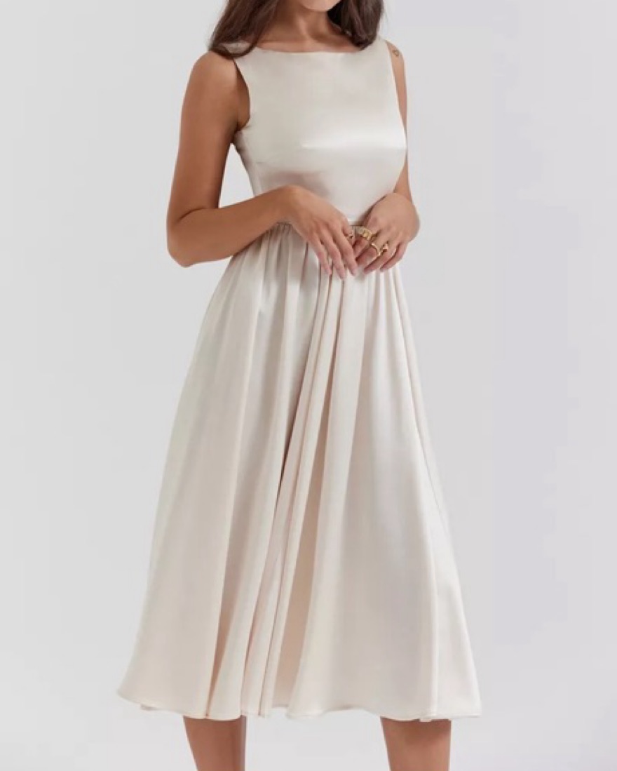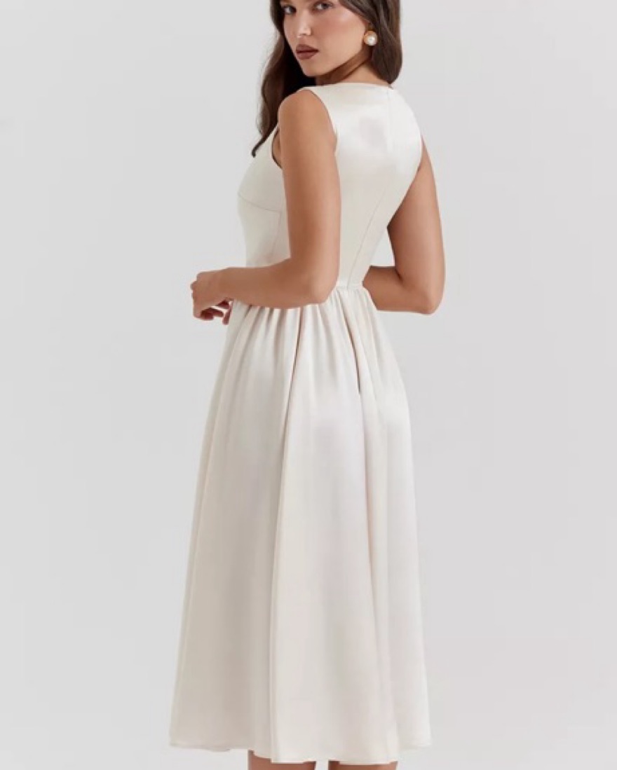Ivory white cream midi dress! Classy dress for bridal showers, bachelorette party, afternoon tea, or to a play. Fit and flare