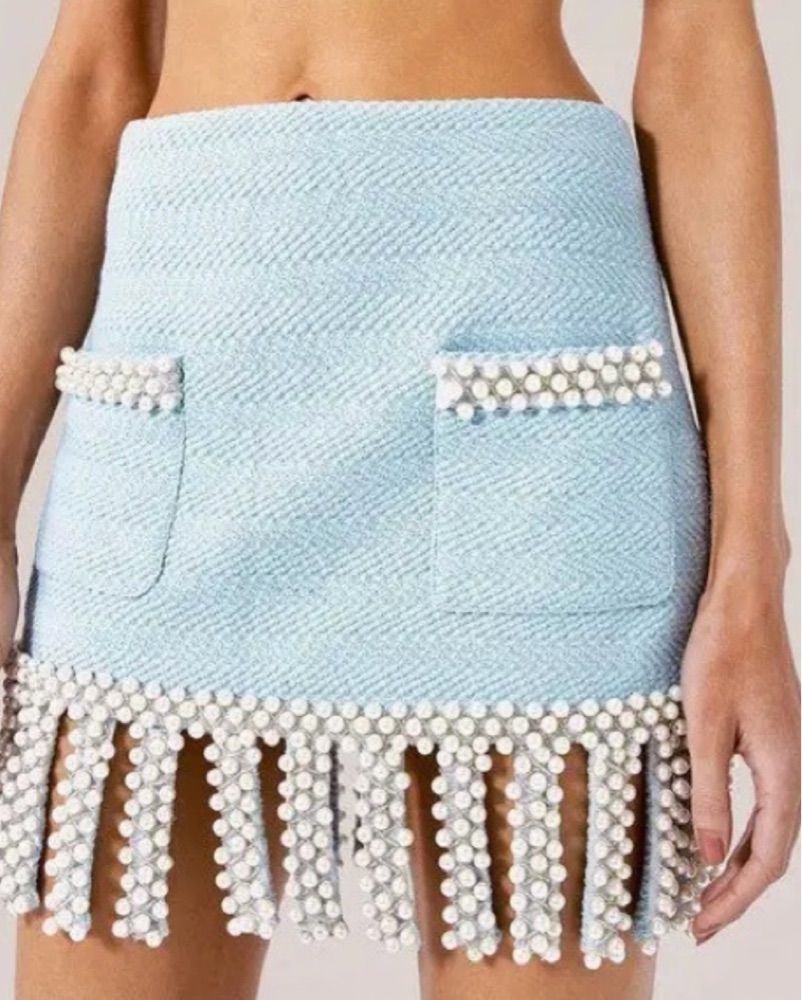 ALEXIS BLUE TWEED PEARL SKIRT by Alexis - Pickle