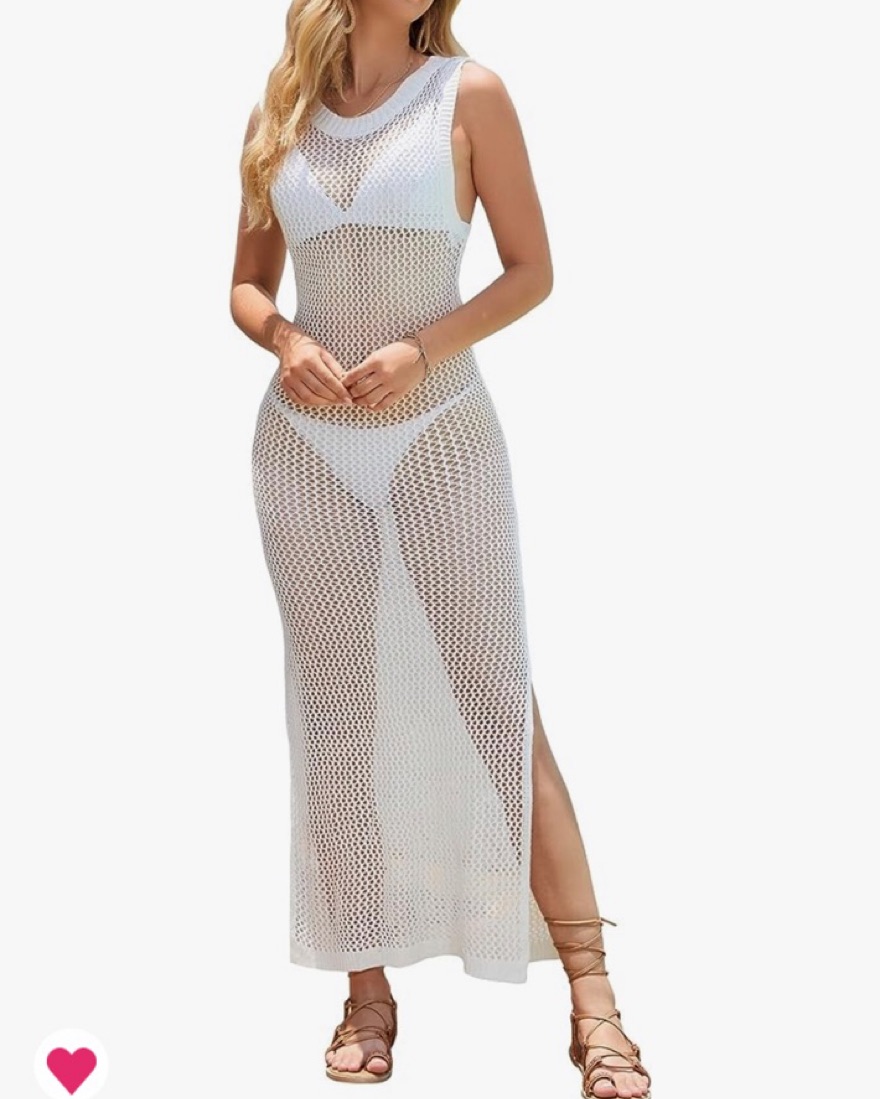 White Crotchet Beach Cover Up by Unknown - Pickle