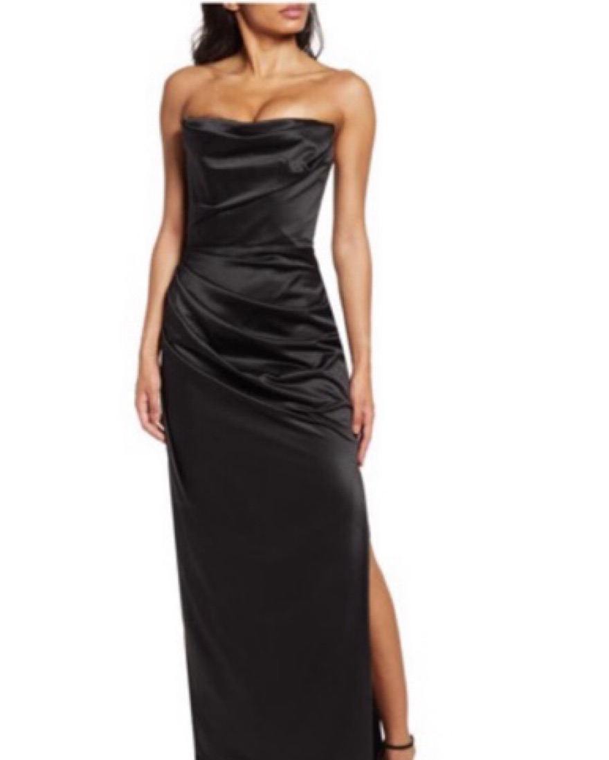 BLACK SATIN STRAPLESS CORSET MAXI. Made from stretch silky satin. Fully lined.