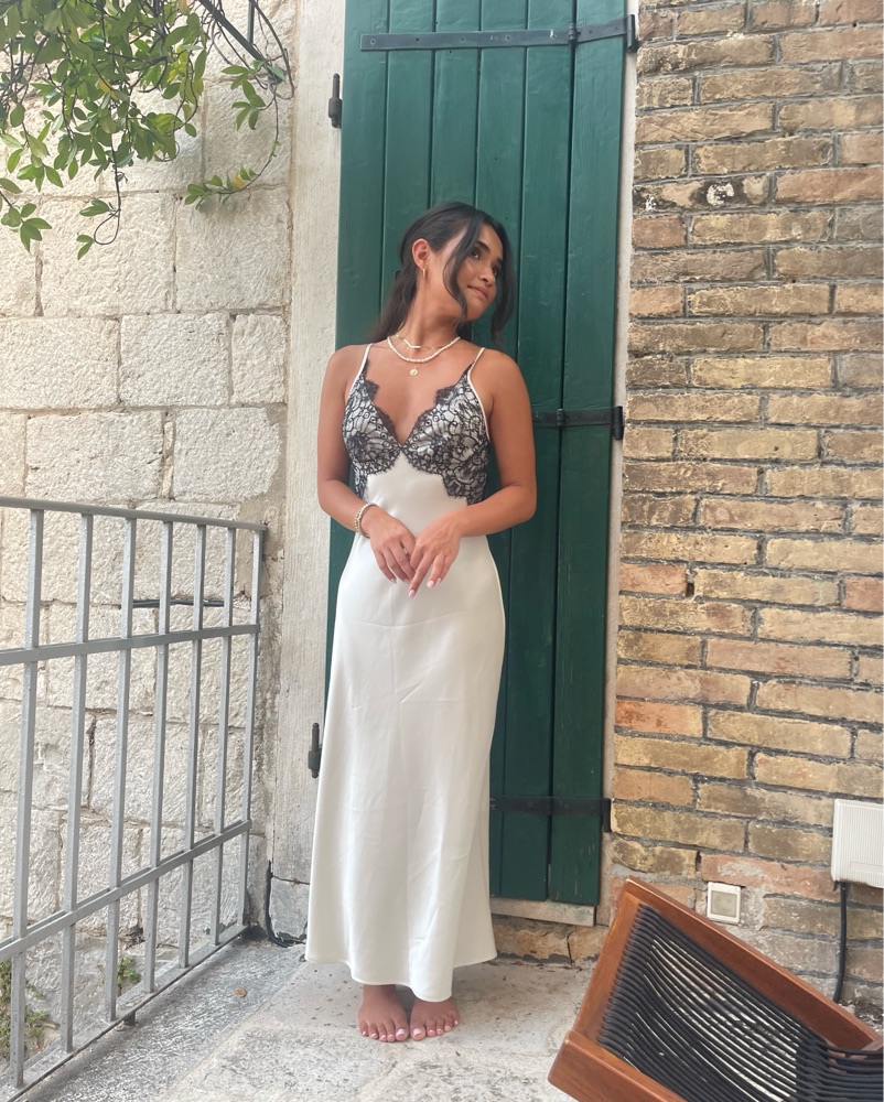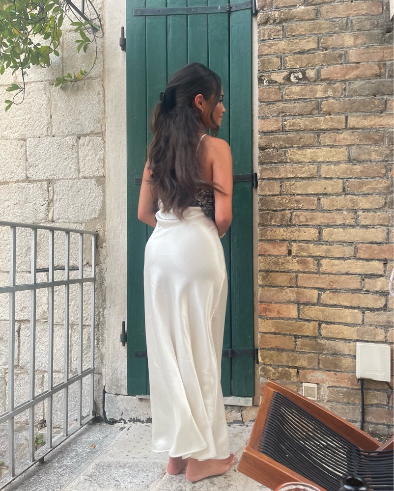 From Aritzia!! Beautiful dress, would be great for vacation, bachelorette, bridal/bride, special occasion or date night. Immensely flattering and thick material that doesn’t cling at all.