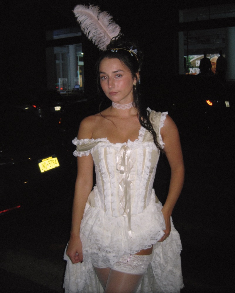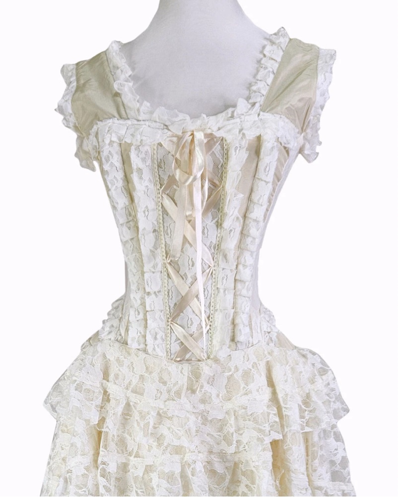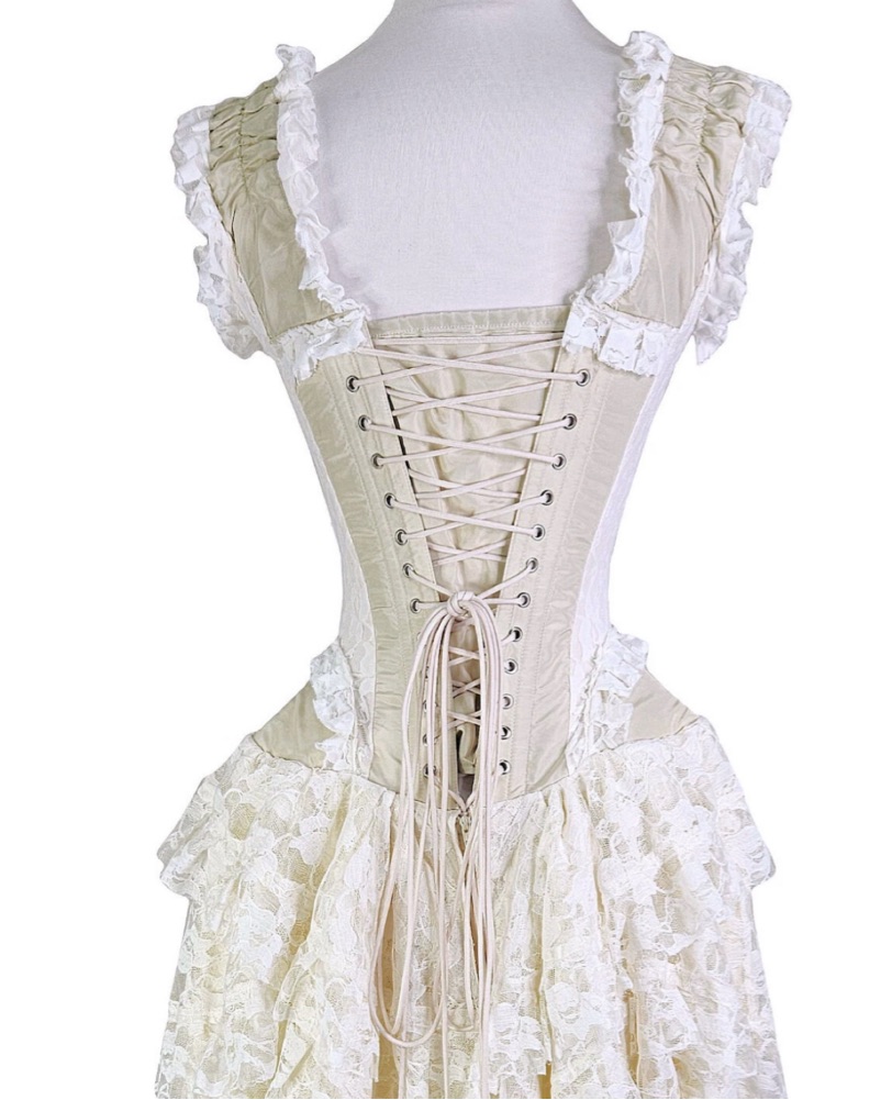 Cream and white lace corset dress for Marie Antoinette costume. Can fit small or a medium. Equivalent to a US size 4